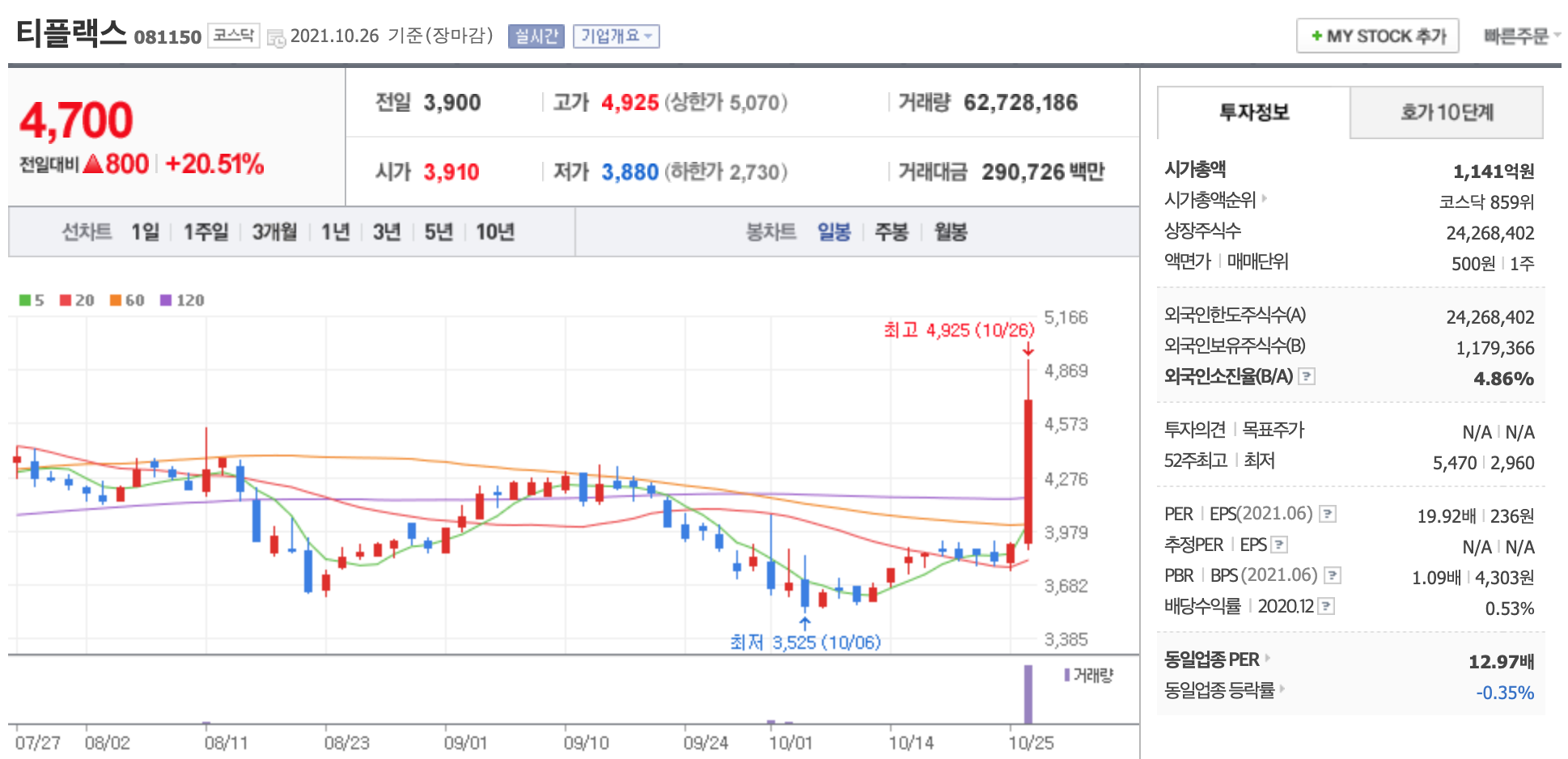 티플랙스가 강세다. 전방 시장 수요 증가로 인한 외형 성장에 이어 우호적인 산업 환경이 지속되면서 구조적인 성장을 이어갈 것이라는 기대감이 주가에 영향을 주는 것으로 보인다.