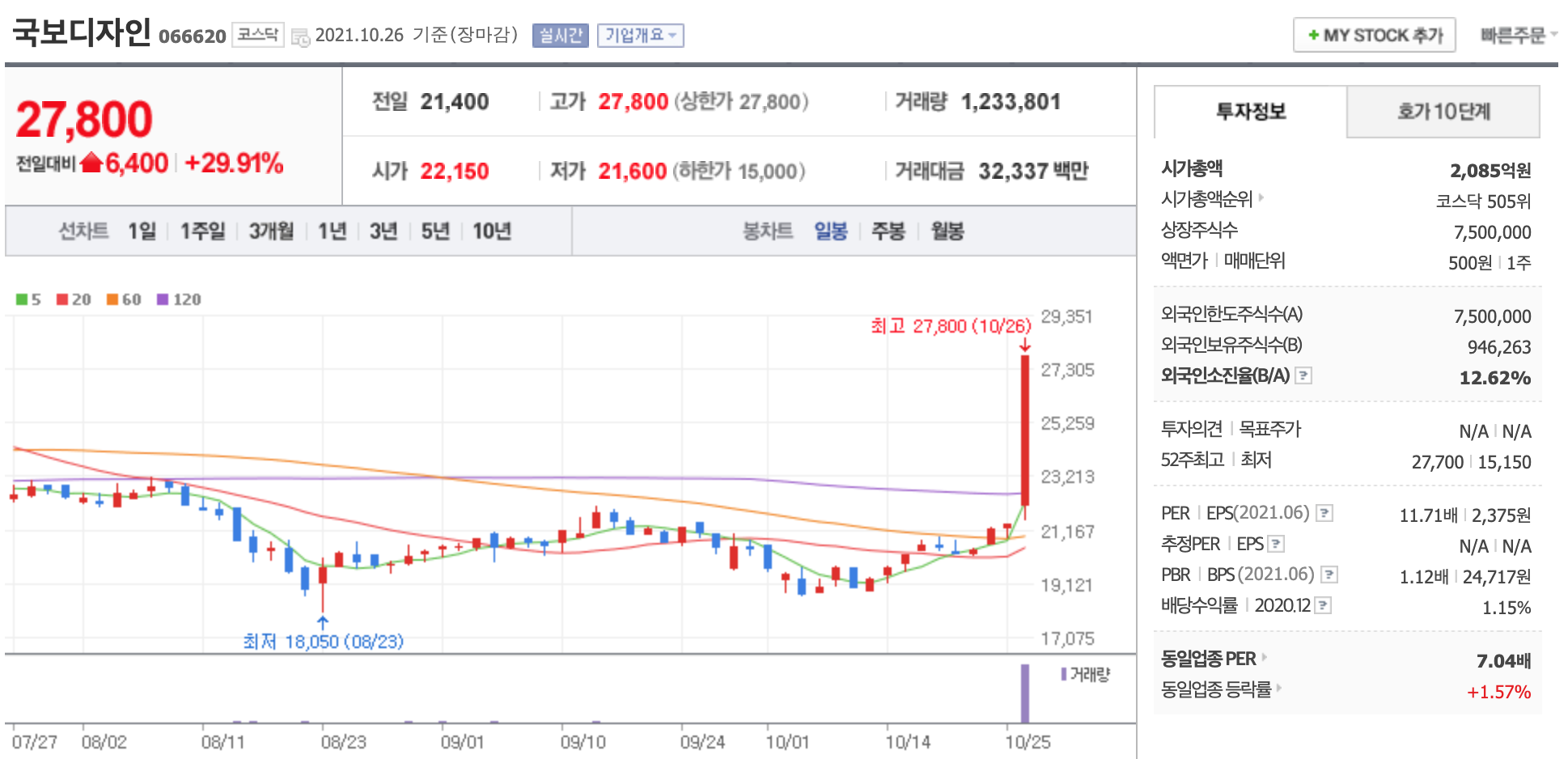 | 오늘의 상한가 종목 (2021.10.28) (4) | 2021.10.28 |