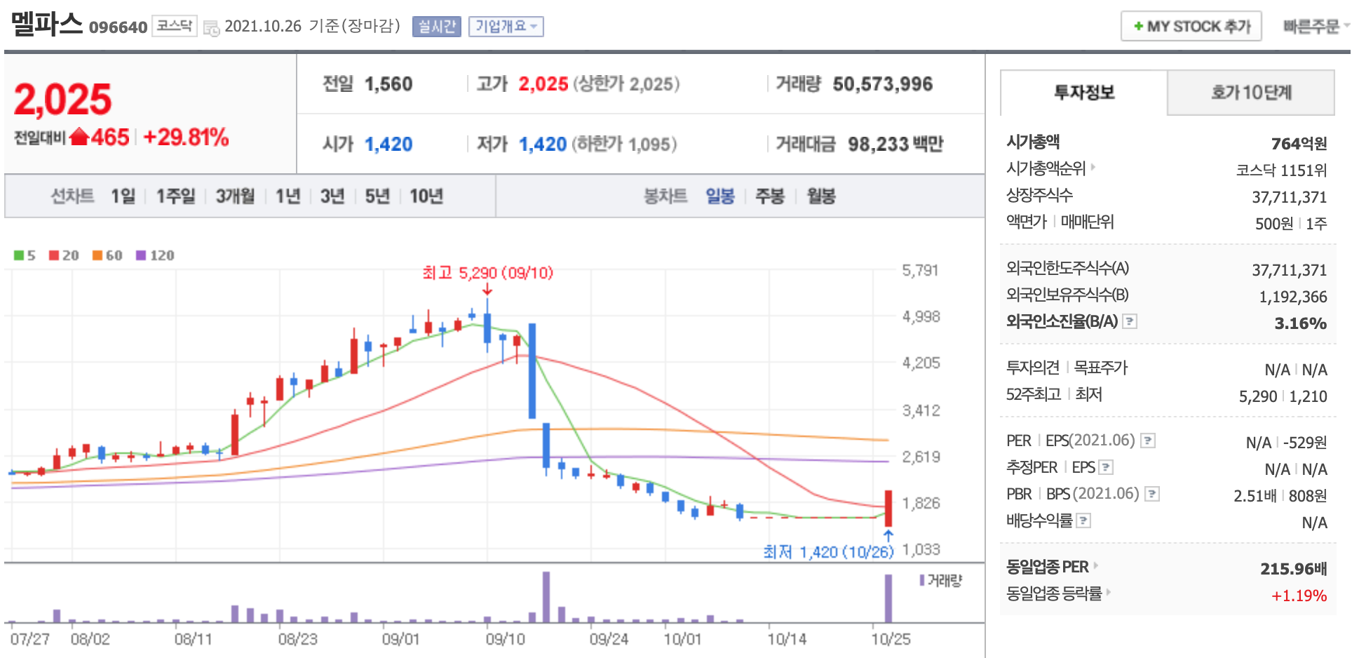 파산 사유 해소로 26일 거래가 재개된 멜파스가 급등하고 있다.