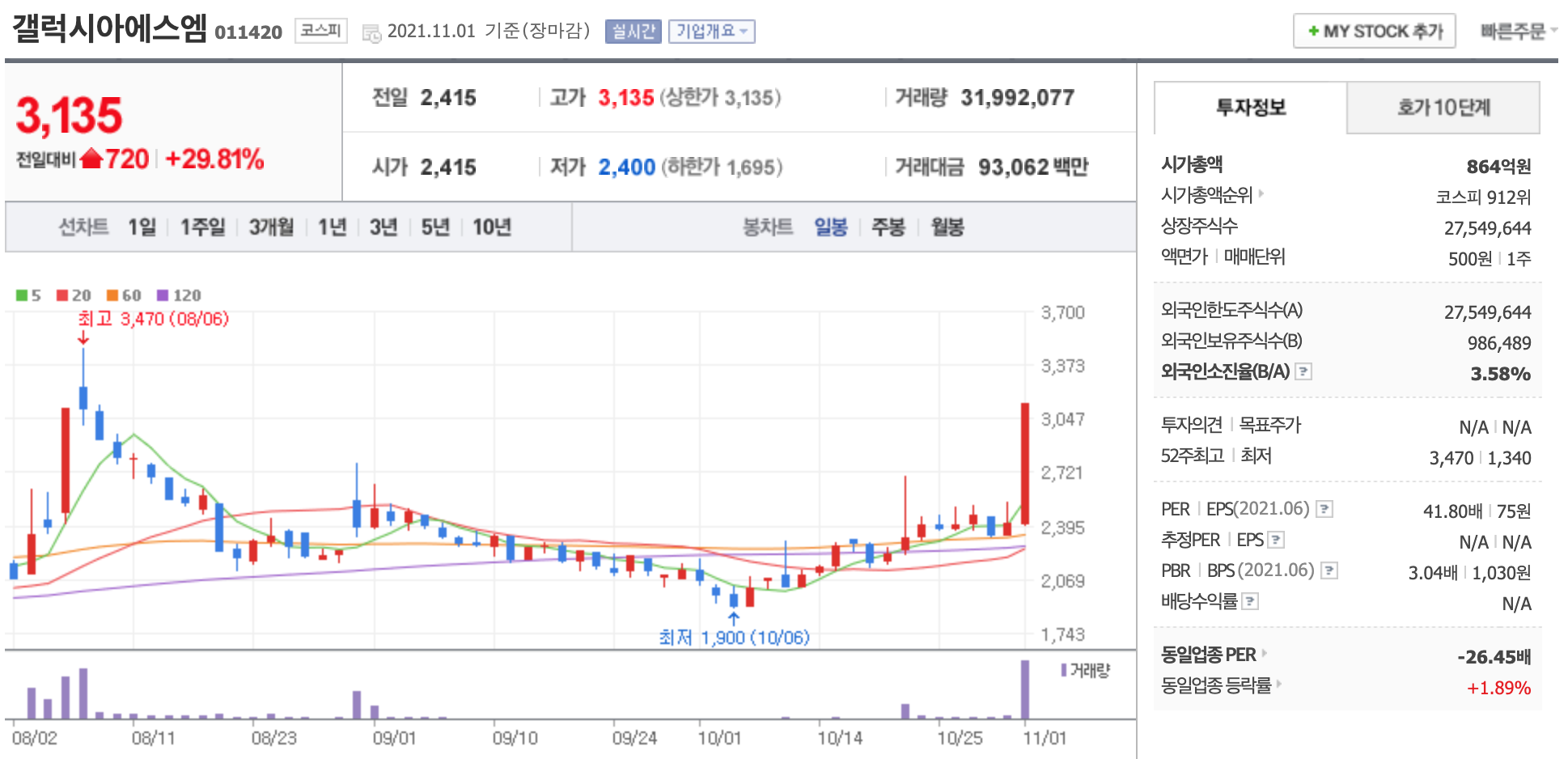 | 오늘의 상한가 종목 (2021.11.02) (12) | 2021.11.02 |