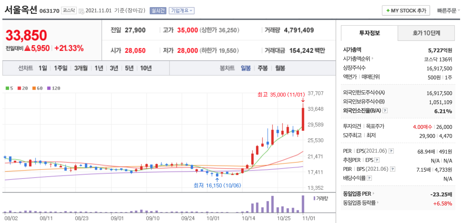 앞서 서울옥션은 지난 6월 암호화폐거래서 업비트를 운영하는 두나무와 NFT 분야 협력을 위한 업무 협약을 맺어 두나무 관련주로 엮인 바 있다.