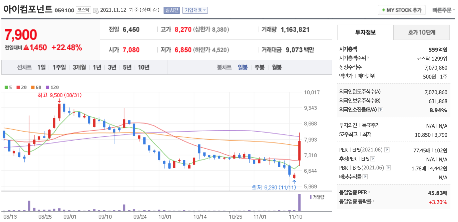 아이컴포넌트가 상승하고 있다. 아이컴포넌트는 갤럭시 폴더블폰 관련주로 꼽힌다.