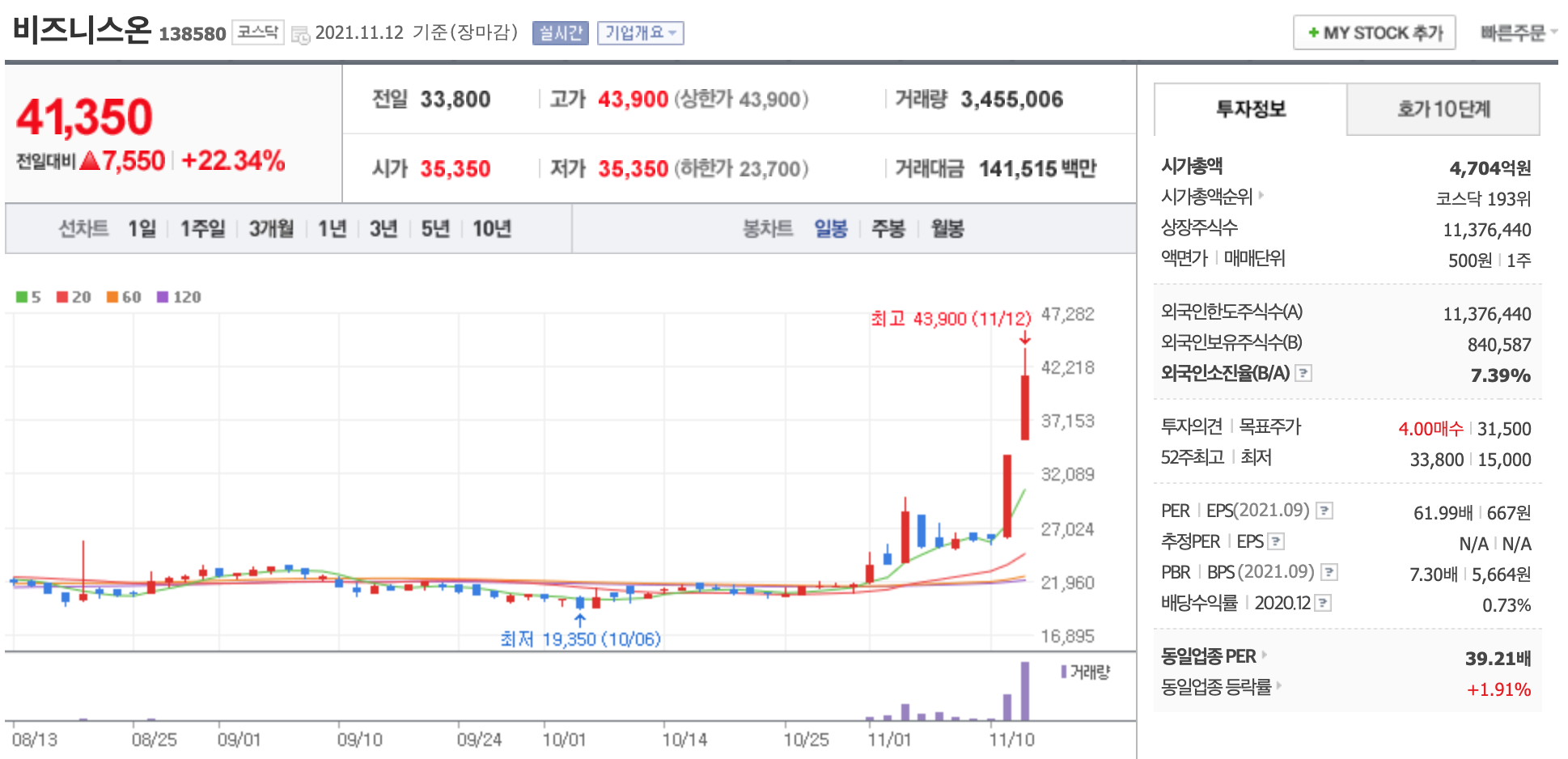 비즈니스온 주식이 단기과열종목으로 지정됐다.