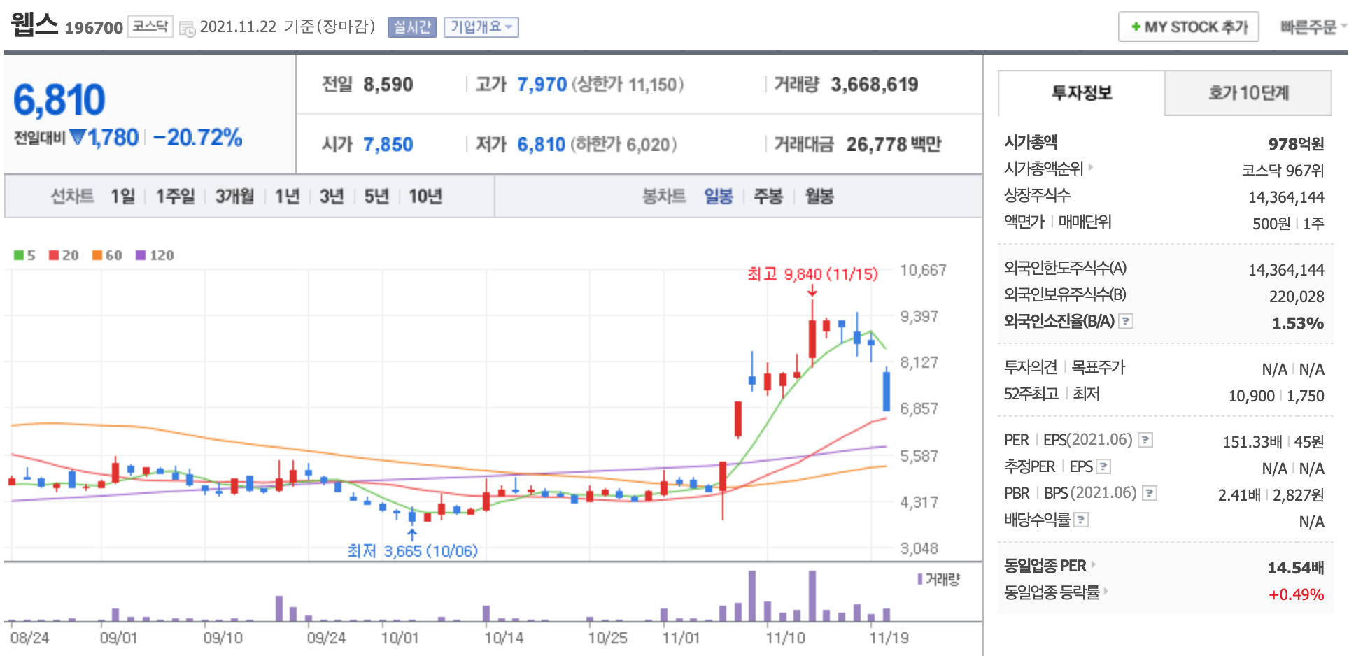 이에 웹스 주가에 영향을 준 것으로 보인다.