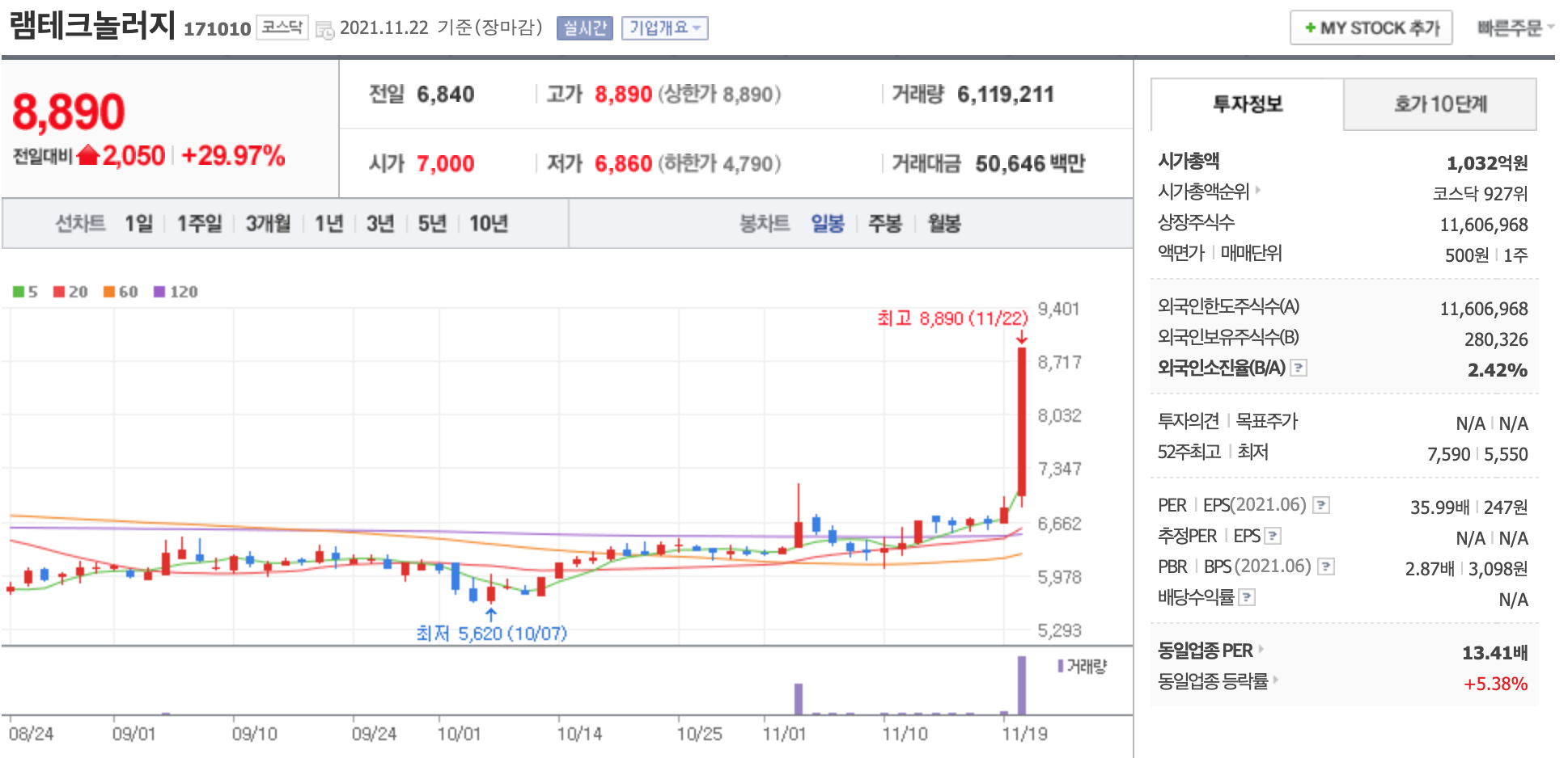 램테크놀러지 - 2001년 10월에 설립되어, 반도체용 식각액, 박리액 및 기타 IT 분야 화학소재 등 전방 산업별 핵심 공정 중 사용되는 프로세스 케미컬 제조사업을 주력으로 하고 있음.