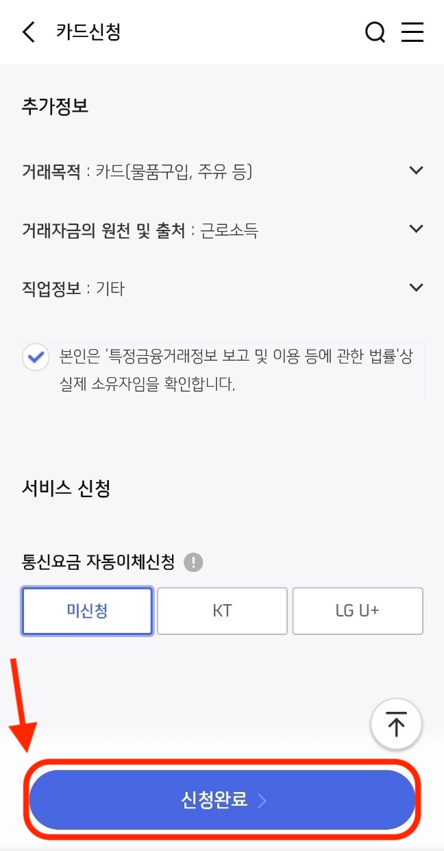 저는 이렇게 했습니다. 이제 끝이 보입니다. 마지막 '신청 완료'를 눌러줍니다.!!!