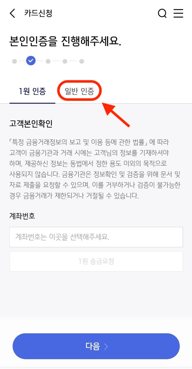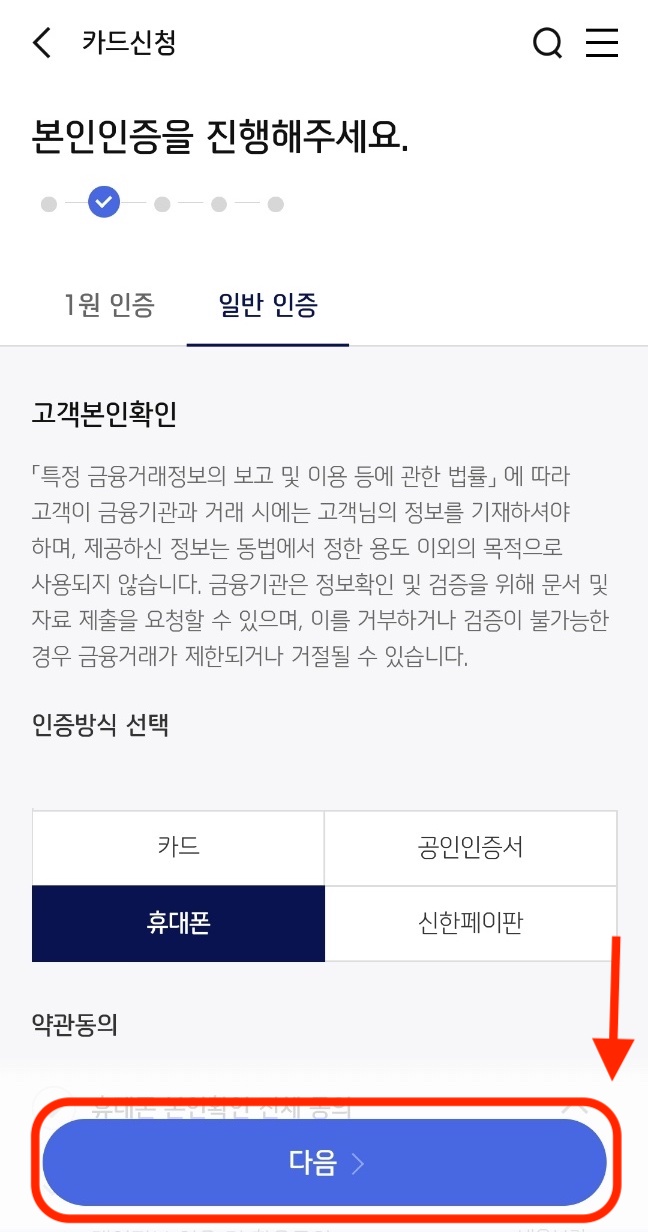 휴대폰 인증을 누른 다음 '다음'을 눌러주세요.