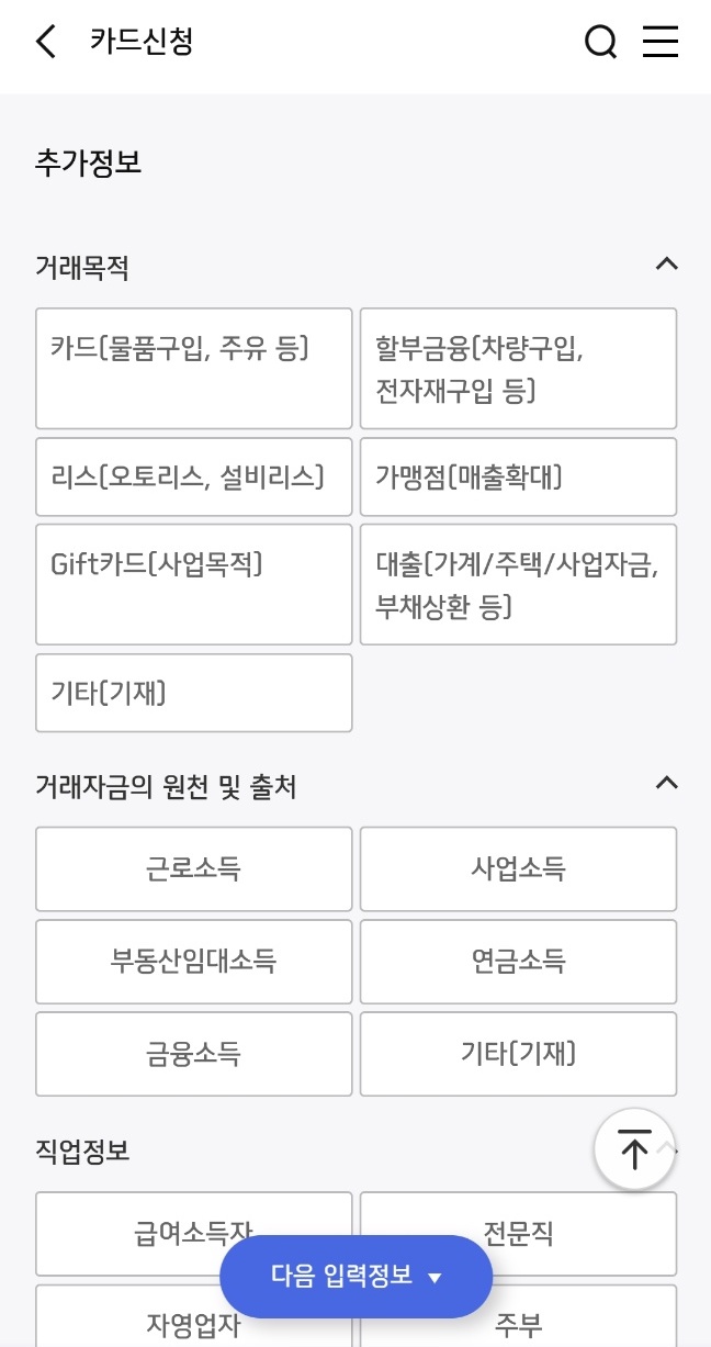 위에 보이시는 추가 정보를 입력하면 됩니다. 자신의 해당되는 사항을 눌러주세요.