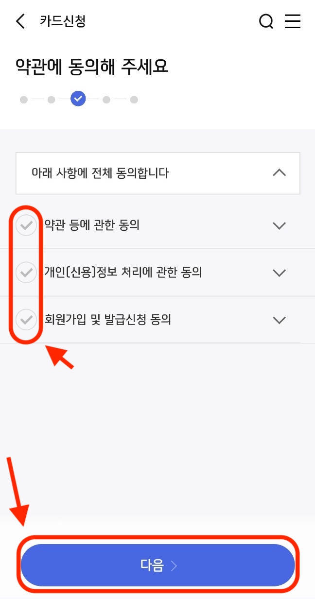여기서도 약관의 동의를 해주신 뒤 '다음'을 눌러줍니다.