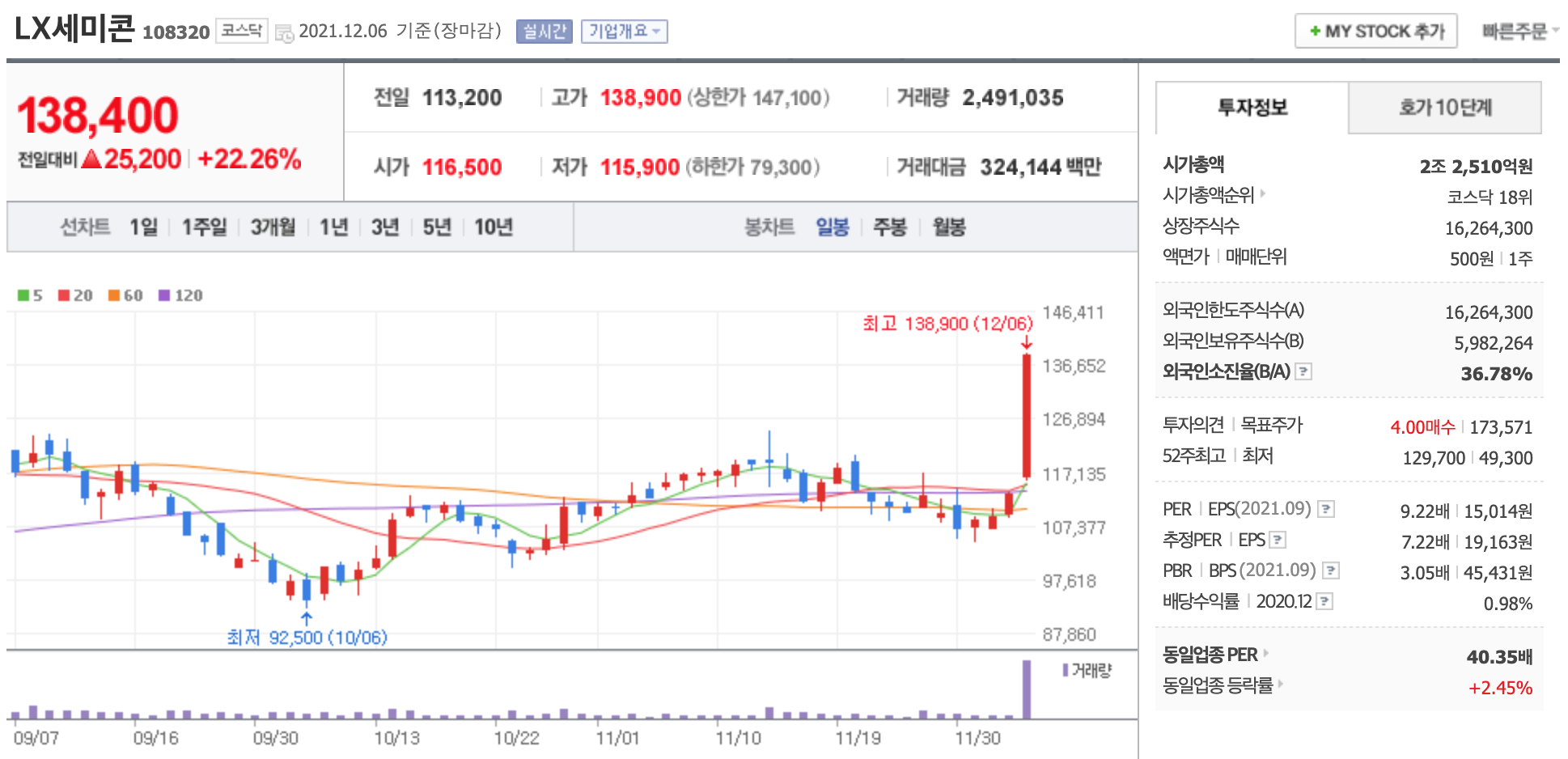 하이투자증권은 LX세미콘의 올해 매출액은 지난해보다 64% 오른 1조9000억원, 영업이익은 작년보다 316% 급등한 3919억원으로 추정하며 LX세미콘의 주가를 23만원으로 제시했다.