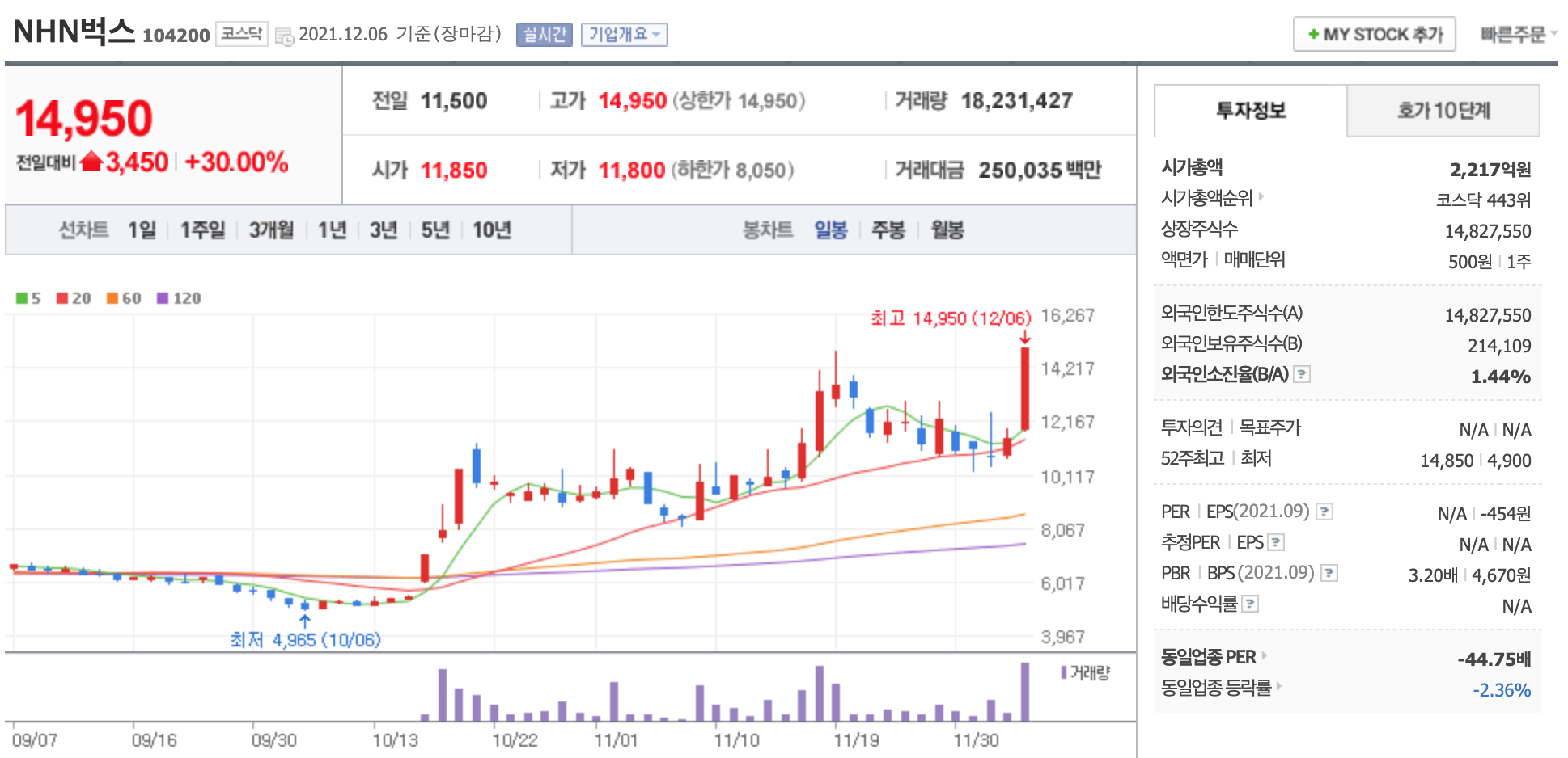 NHN벅스 주가에 관심이 쏠리고 있다.