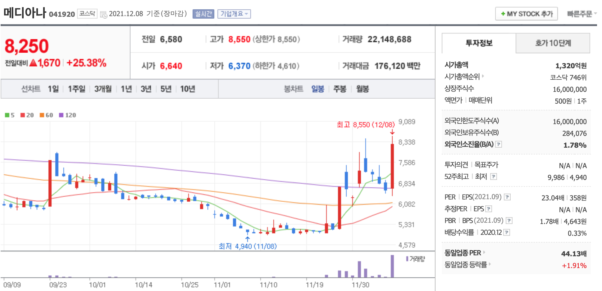 메디아나 주가가 상승세다.