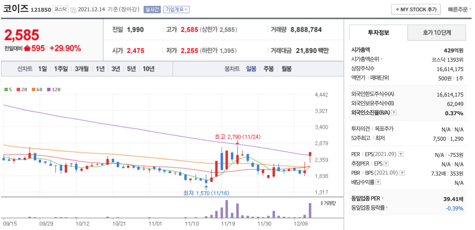 코이즈, 2차전지 양극재 첨가제 양산 기대감에 상한가