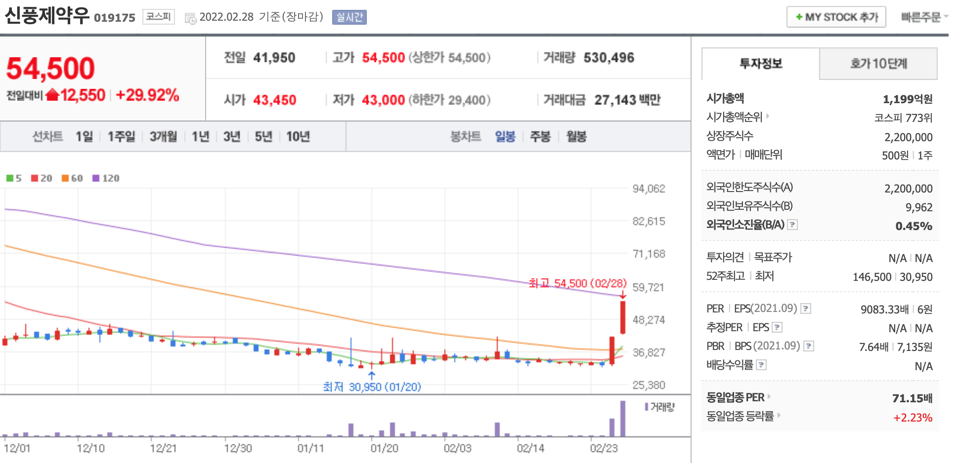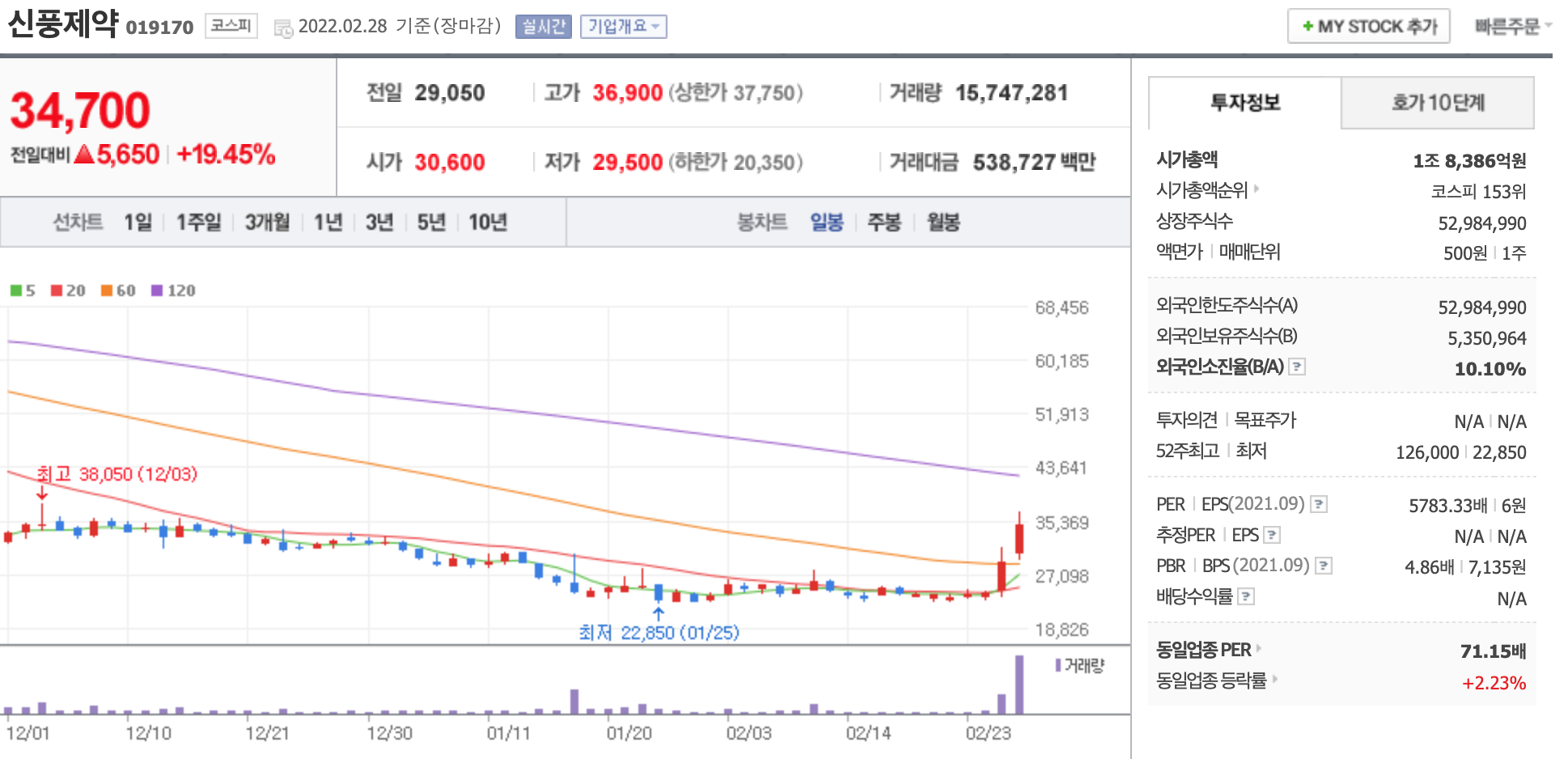 신풍제약이 신종 코로나 바이러스 감염증(코로나19) 치료제의 긍정적인 임상 분석 결과에 연일 급등하고 있다.