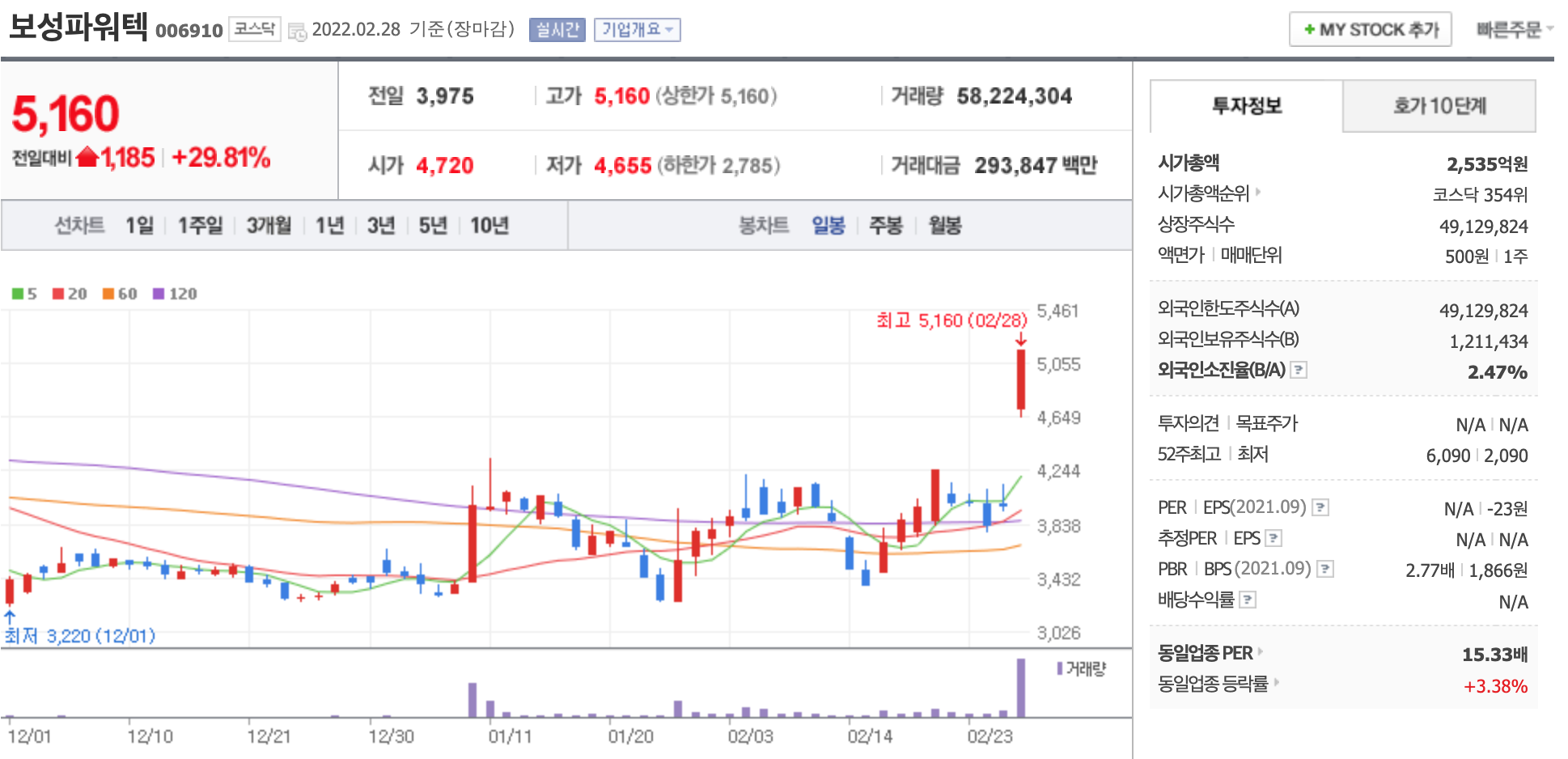 상한가 종목과 관련기사입니다. 🐜🐜출처 - 네이버 증권