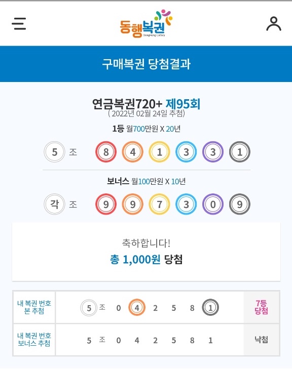사실 연금복권 리뷰를 작성하게 된 계기는 제가 무려 7등에 당첨됐기 때문입니다. 👏🏻👏🏻👏🏻