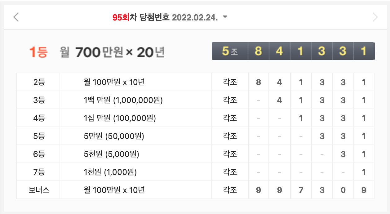 각 번호만 맞다면 2등 조까지 맞다면 1등입니다.