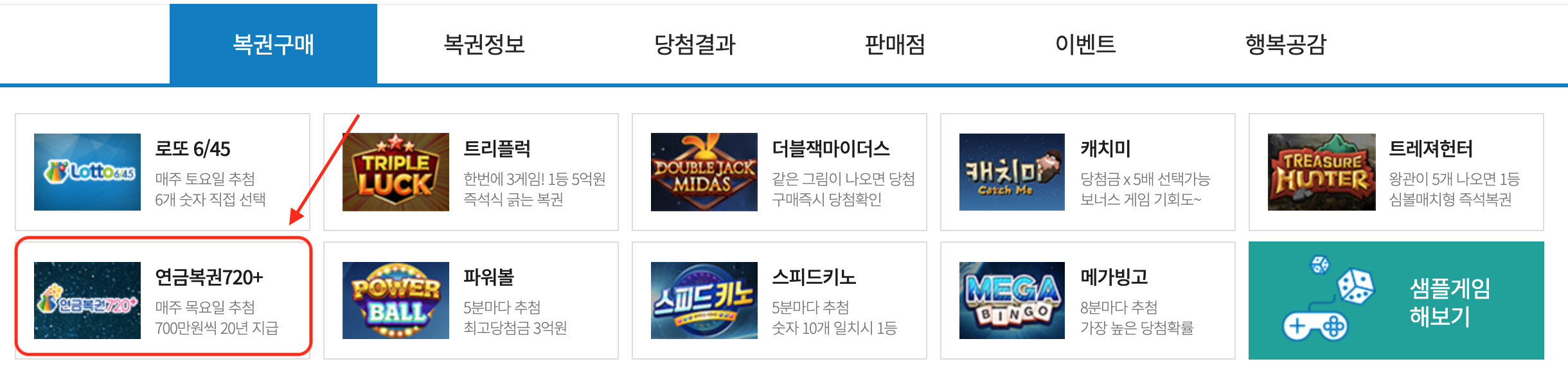 복권 구매 -> 연금복권720+를 클릭해줍니다.