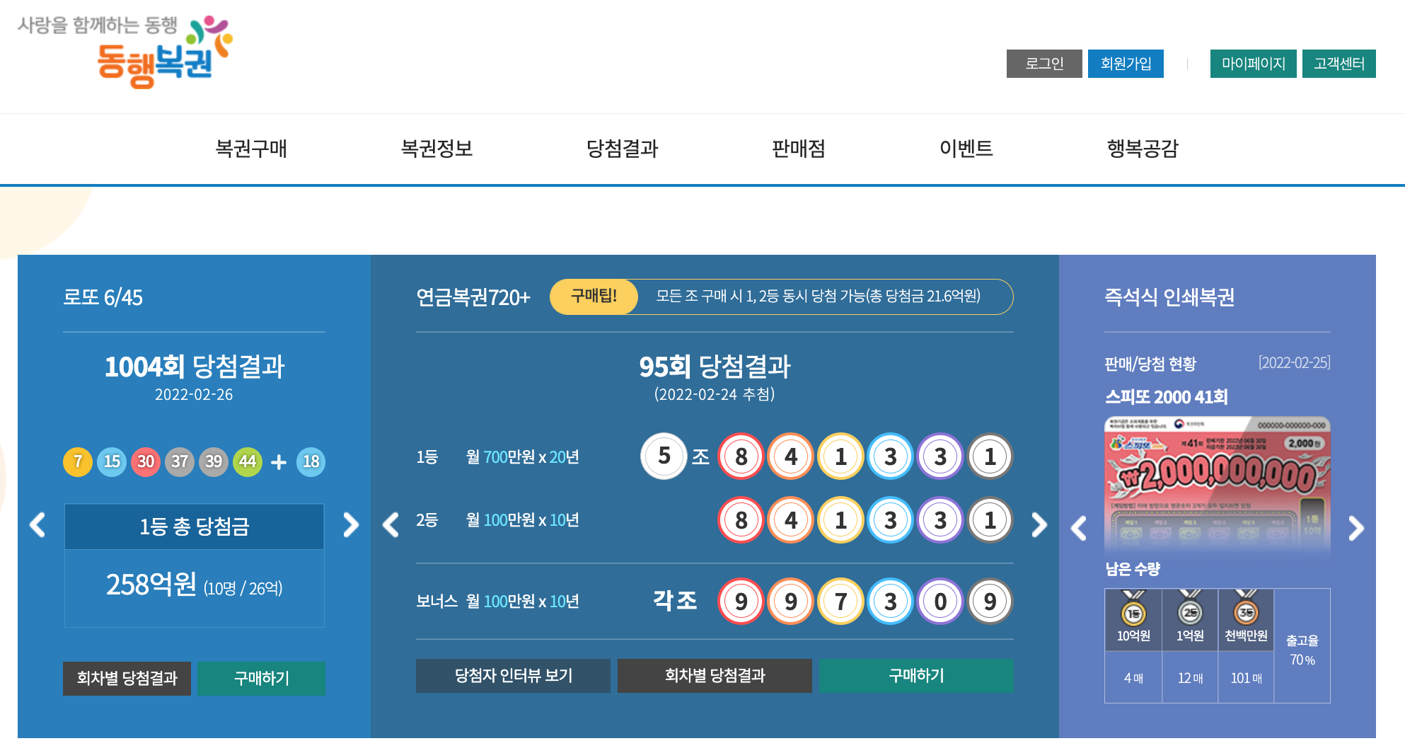 마지막 행운의 연금식 당첨은 (주)동행복권으로 가시면 됩니다.