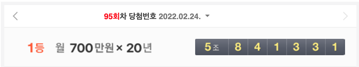 연금복권 1등 당첨은 조와 번호가 모두 맞아야 인정이 됩니다.