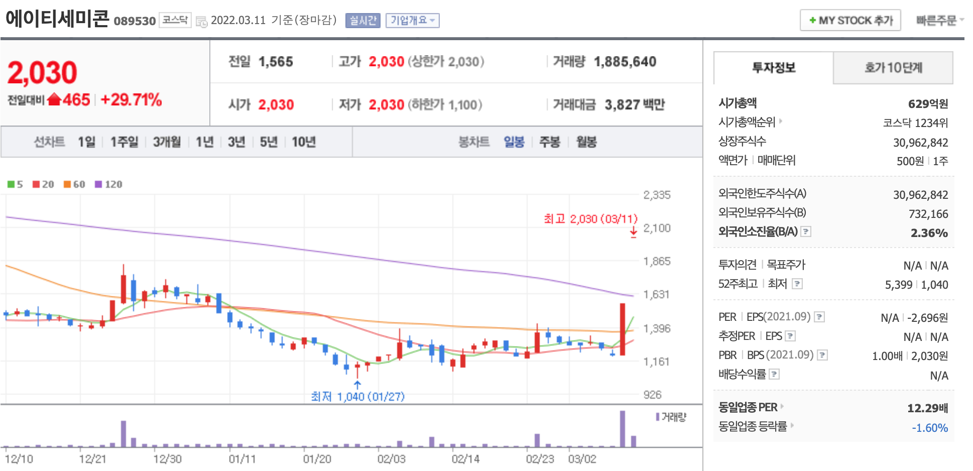 에이티세미콘, 시총 4배 수준 2100억 자금조달...이틀째 상한가 행진