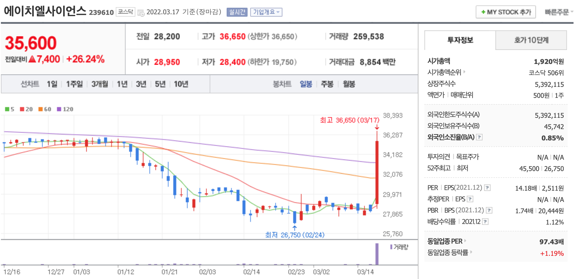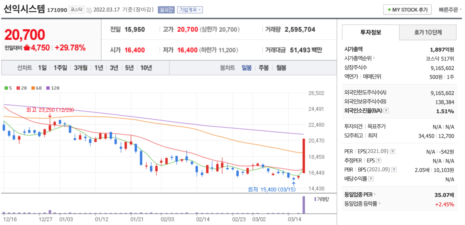 상한가 종목과 관련기사입니다. 🐜🐜출처 - 네이버 증권