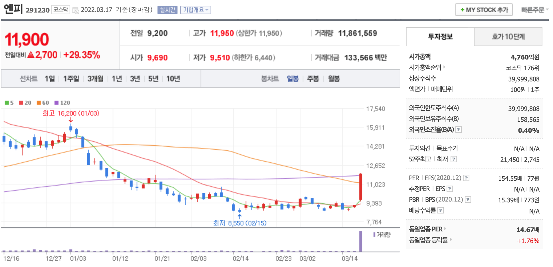 엔피 주가 29%↑... 초강세, 무슨 뉴스가?