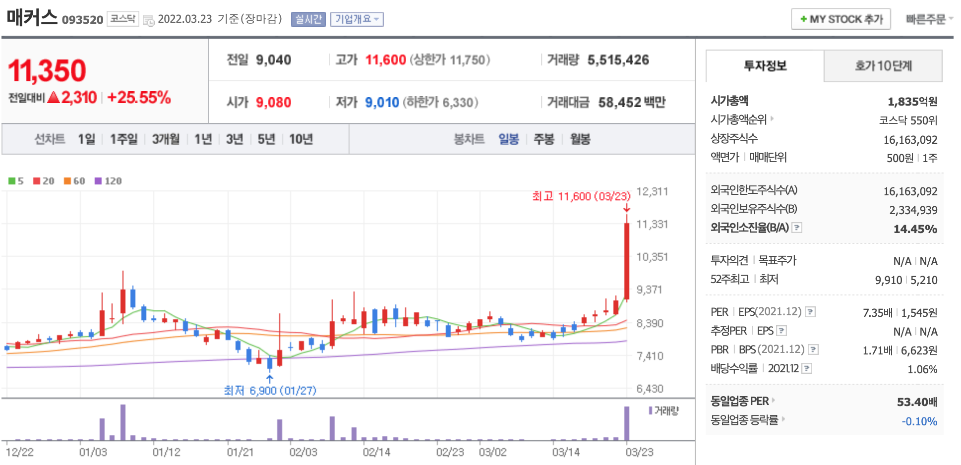 매커스 주가가 상승 중이다. 매커스는 비트코인 관련주이다. 주가는 비트코인 때문에 상승 중인 것으로 풀이된다.