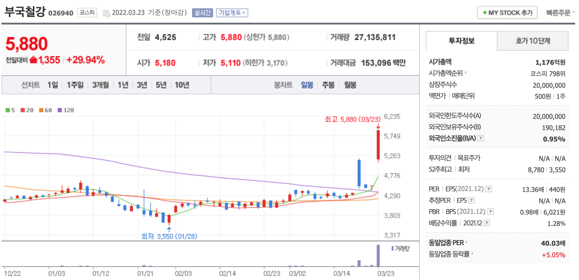 | 오늘의 상한가 종목 (2022.03.28) (9) | 2022.03.29 |
