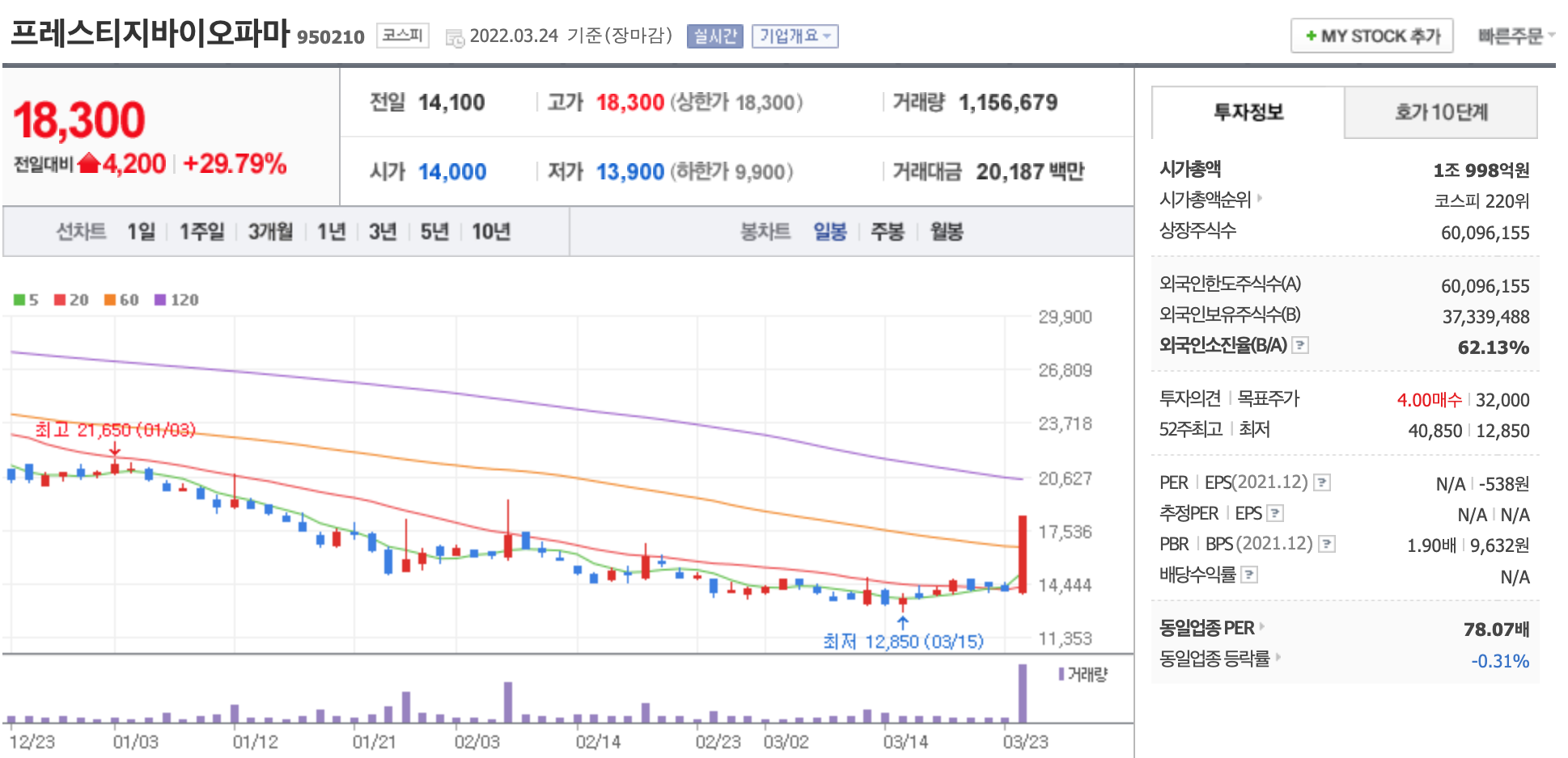 | 오늘의 상한가 종목 (2022.03.29) (23) | 2022.03.29 |