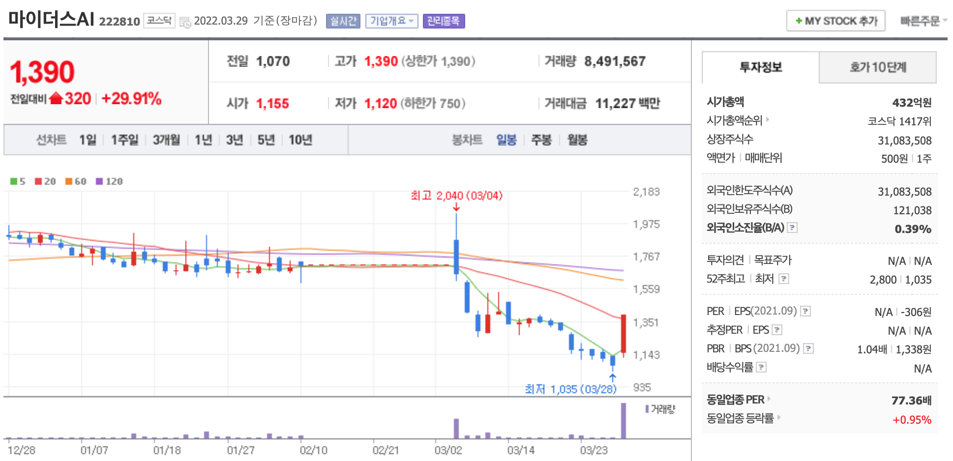 이에 거래정지가 됐고 다시 재개되면서 상승세를 보이고 있다.