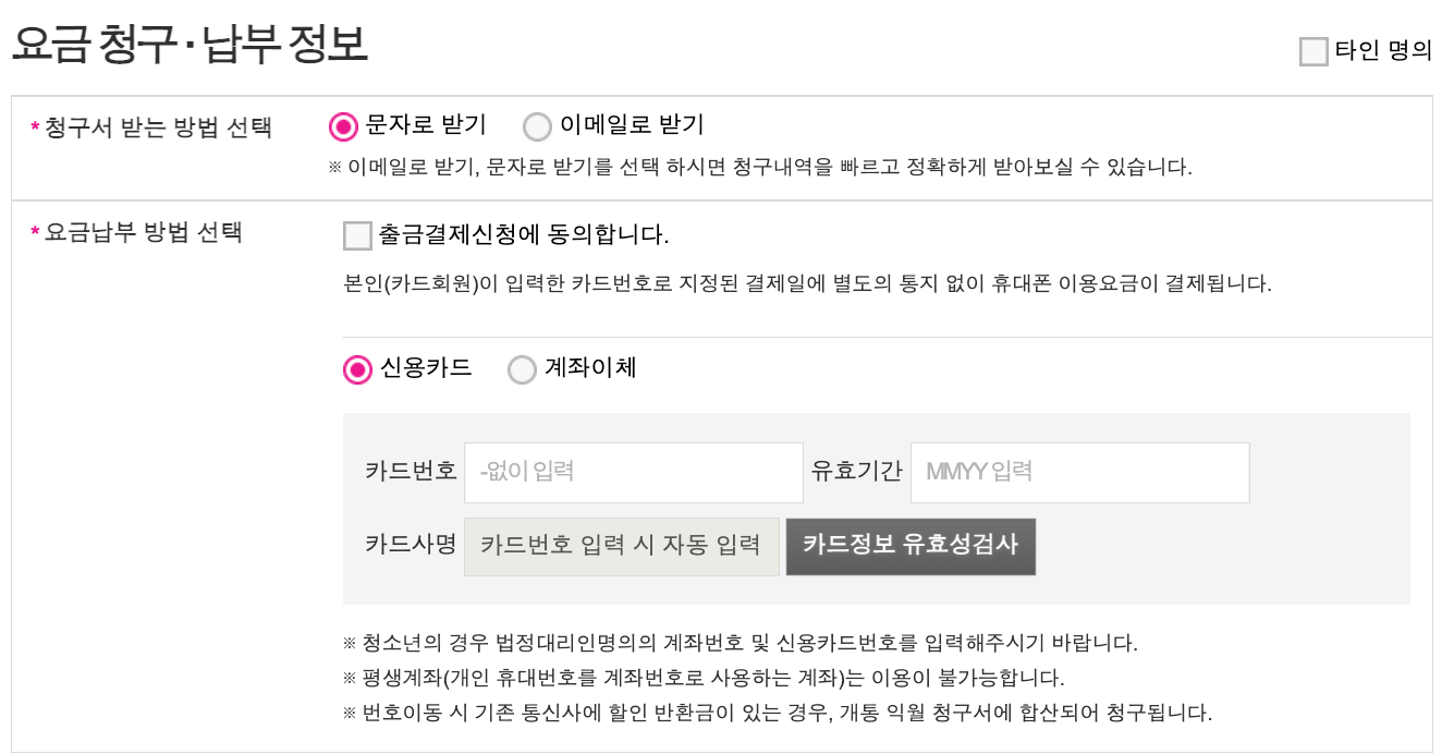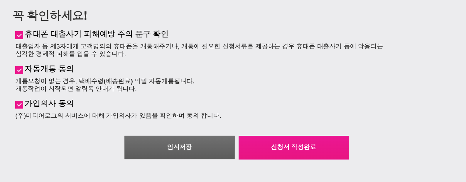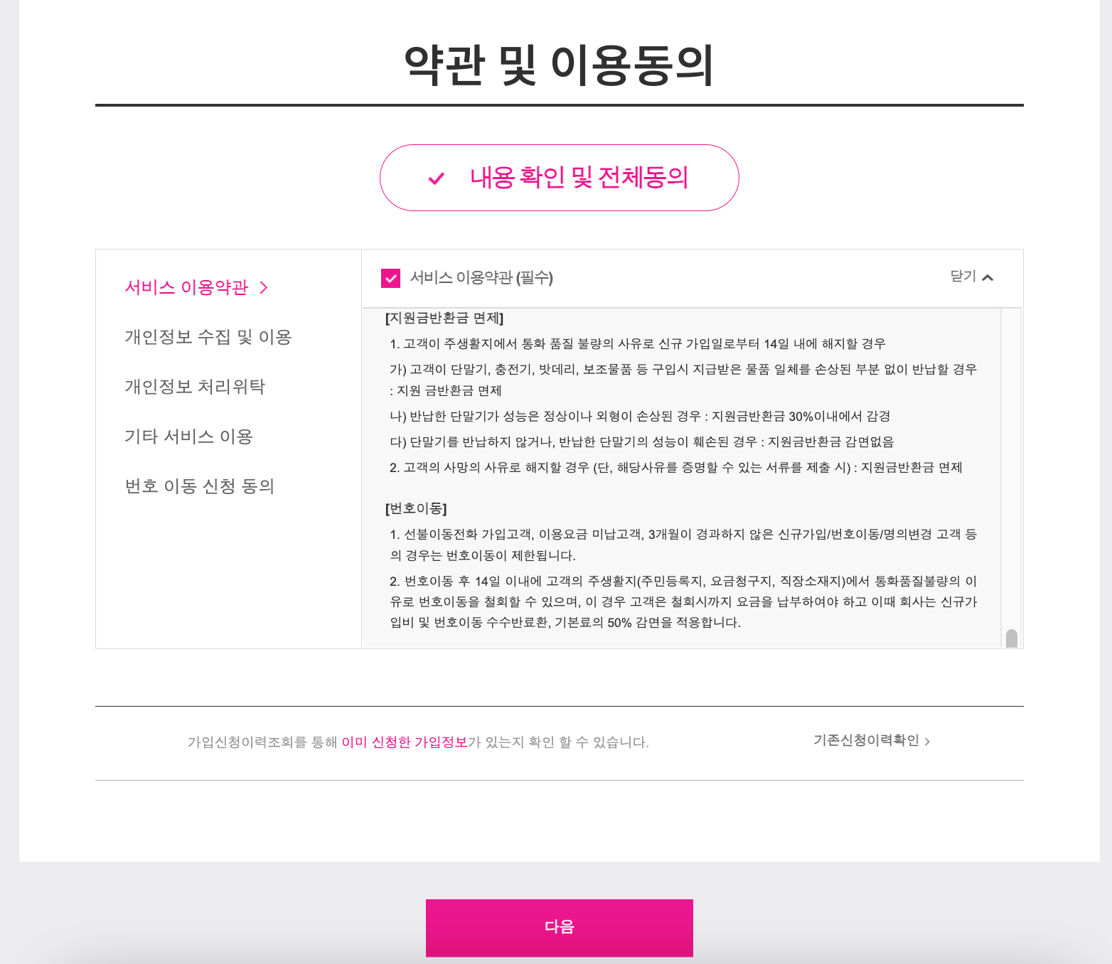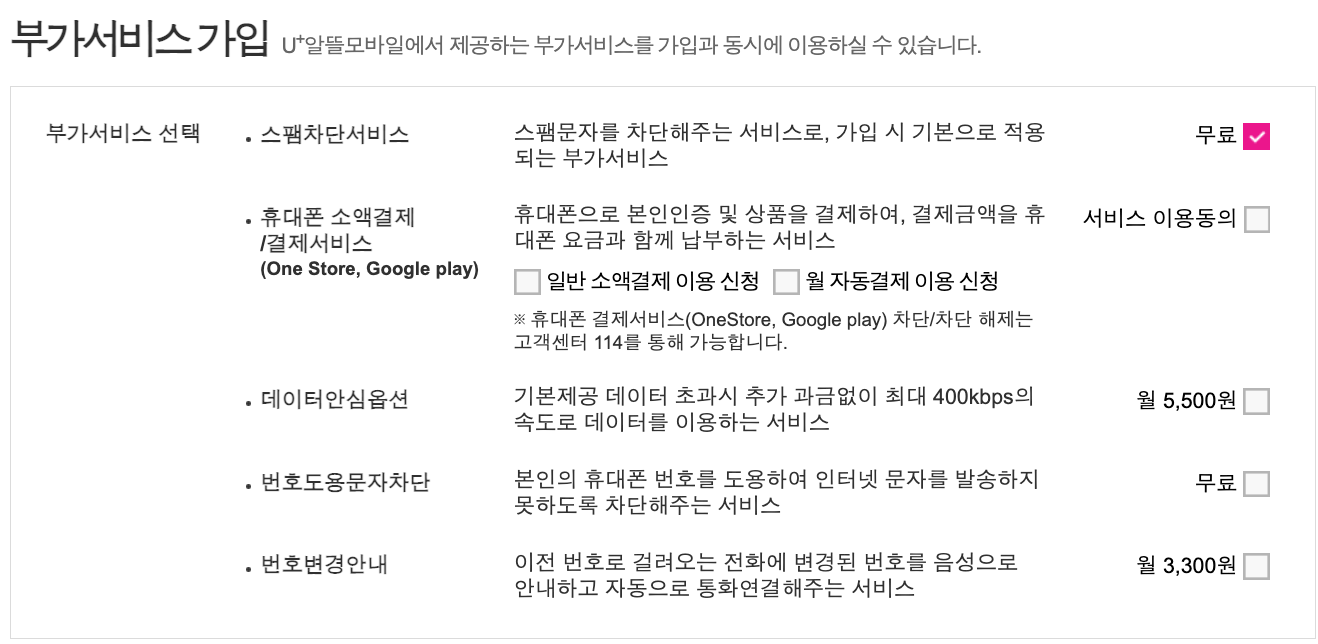 부가서비스 가입은 필요한 분들만 하셔도 되며 저 같은 경우 무료인 서비스만 체크했습니다.