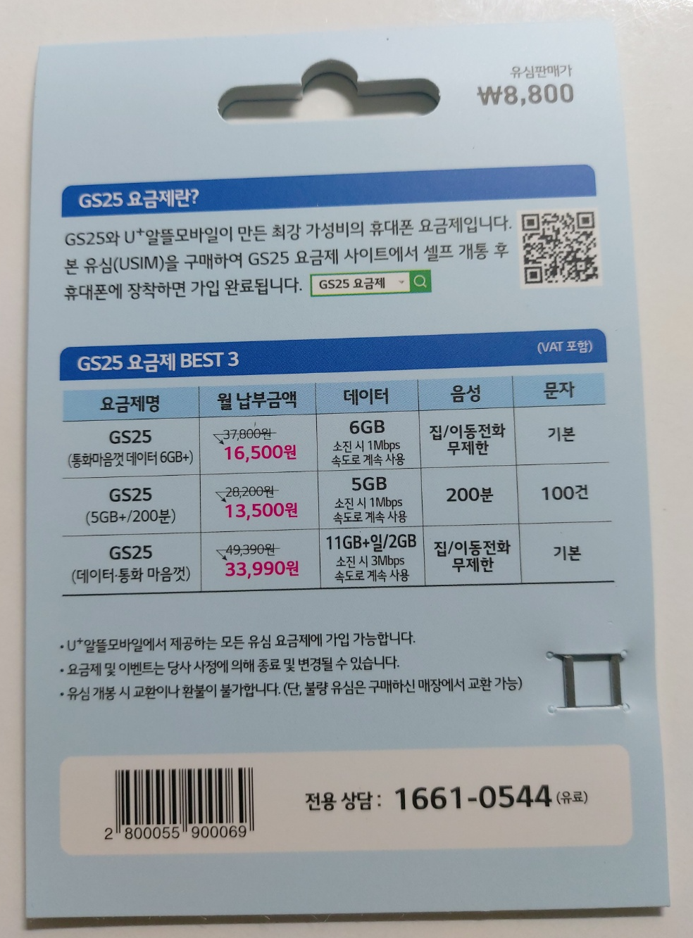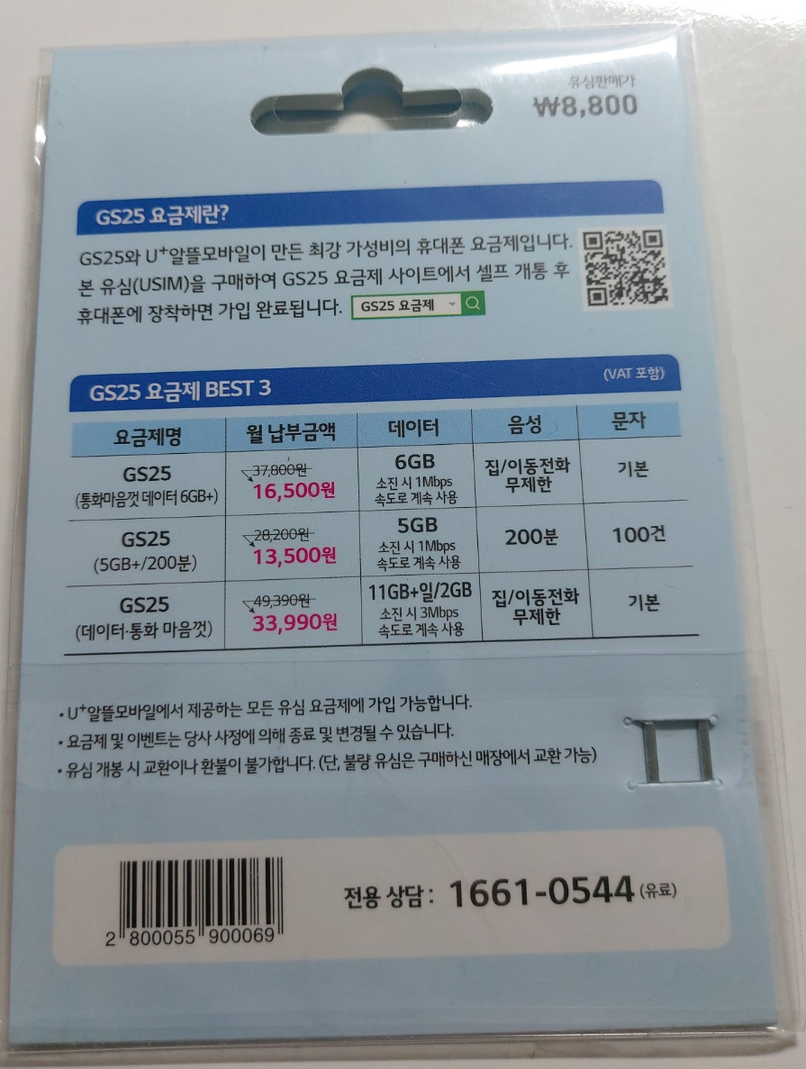4군데를 돌아다녀서.. 찾을 GS25 요금제 유심입니다..