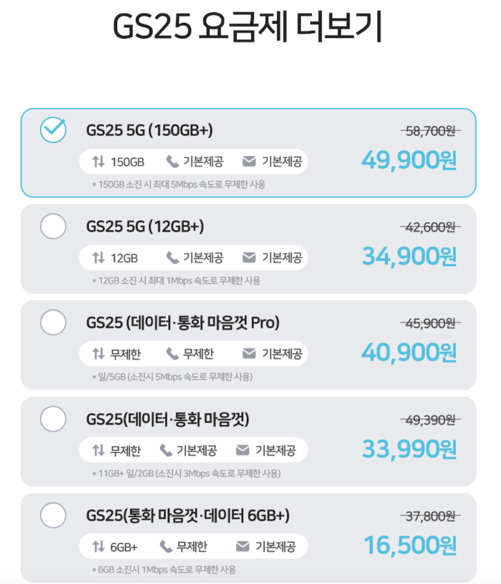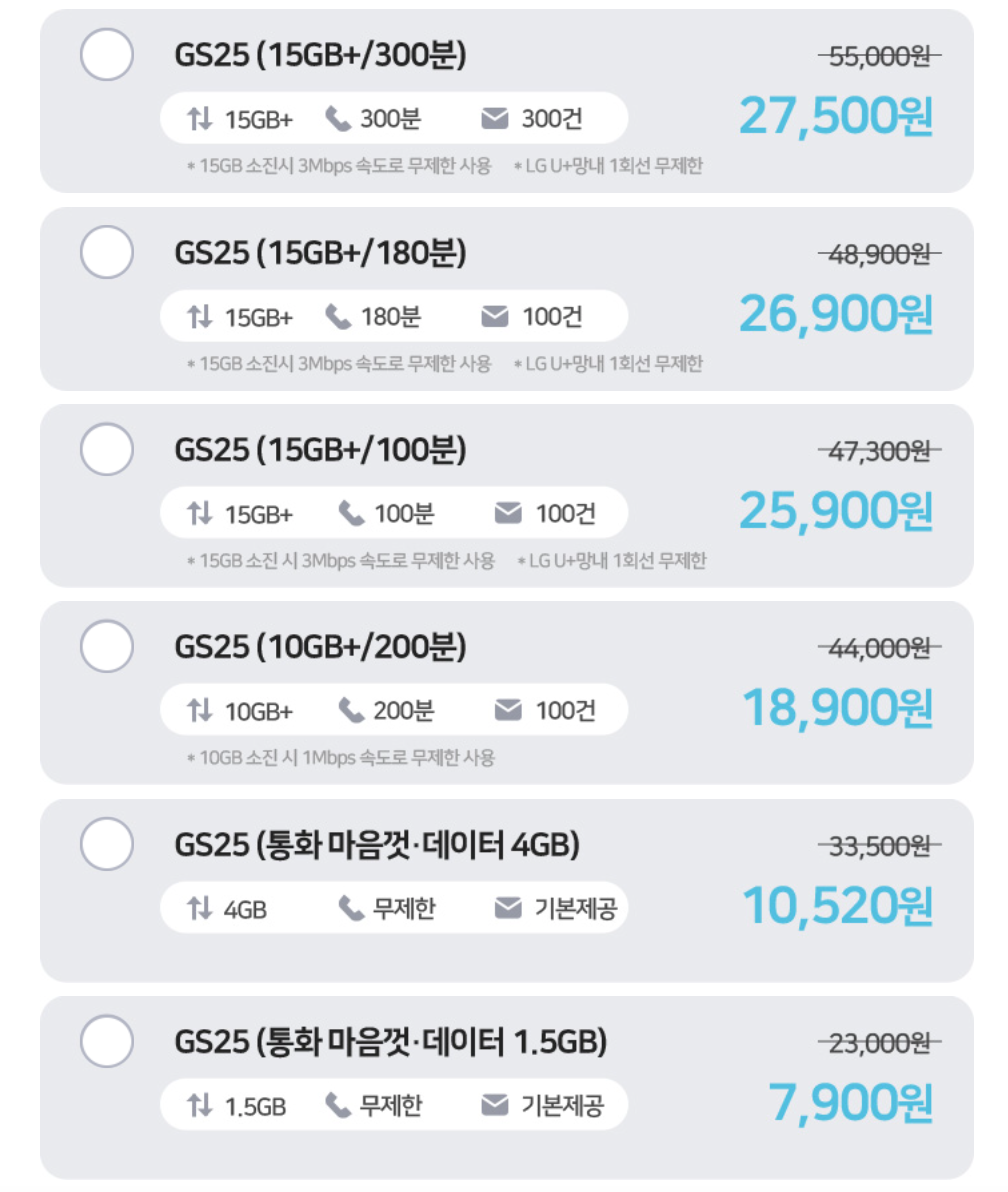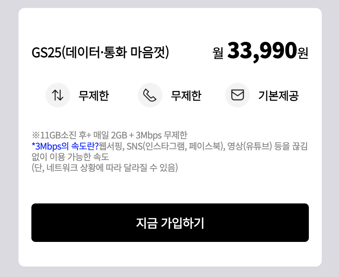 저는 그래서 GS25 알뜰요금제를 선택했습니다. 그 이유는!