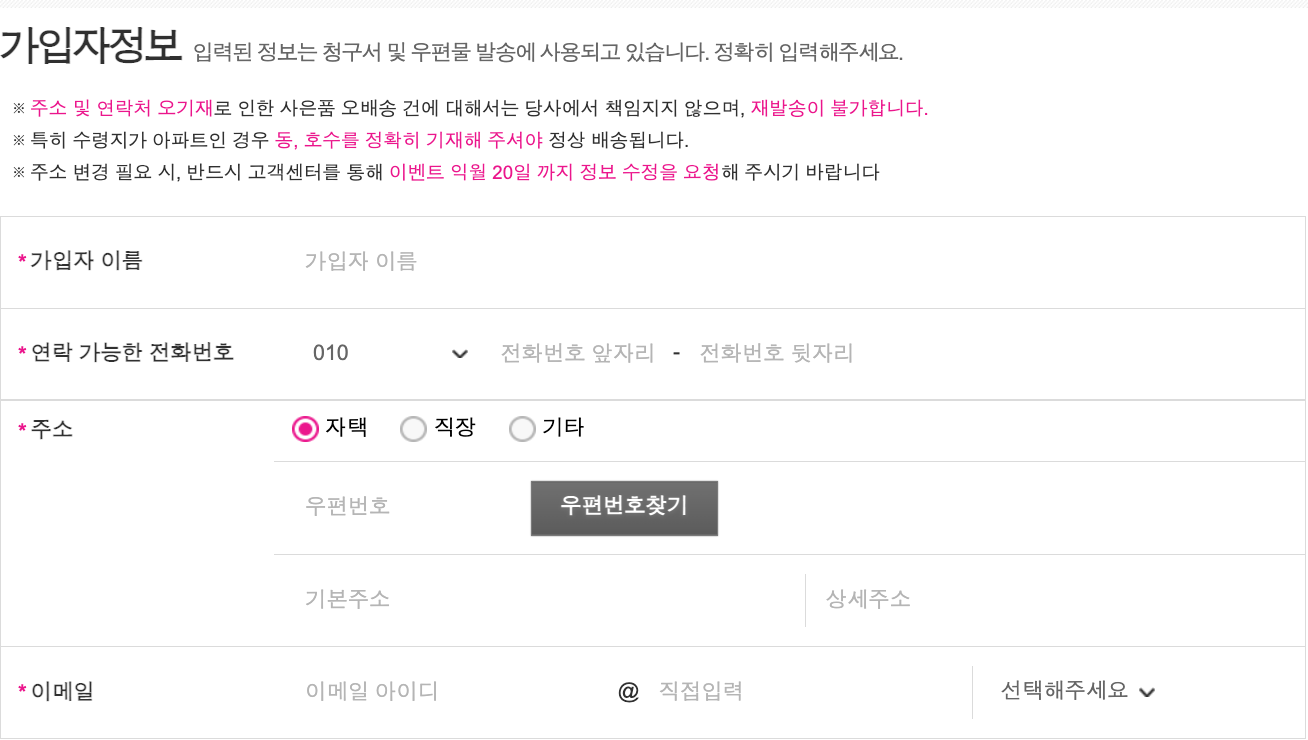 추천인 정보는 사전에 설명드렸던 1만 point 지급 이벤트로 입력 시 지급을 해줍니다.