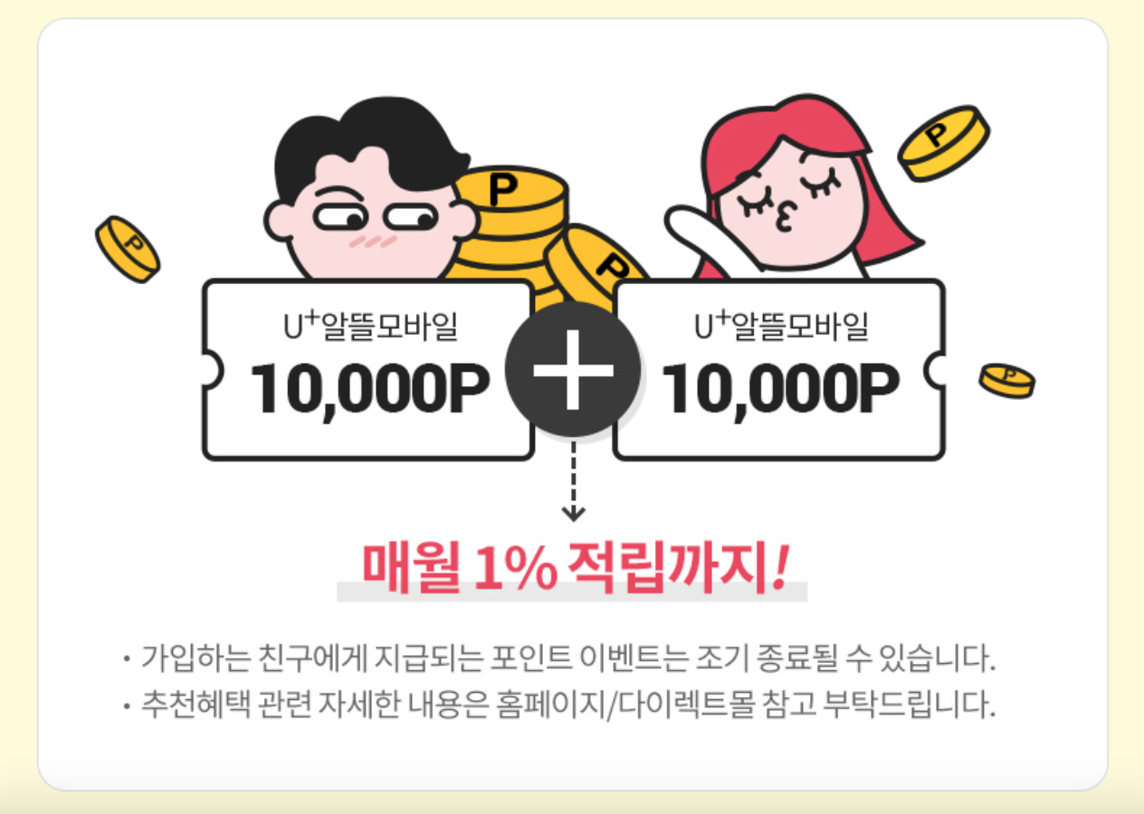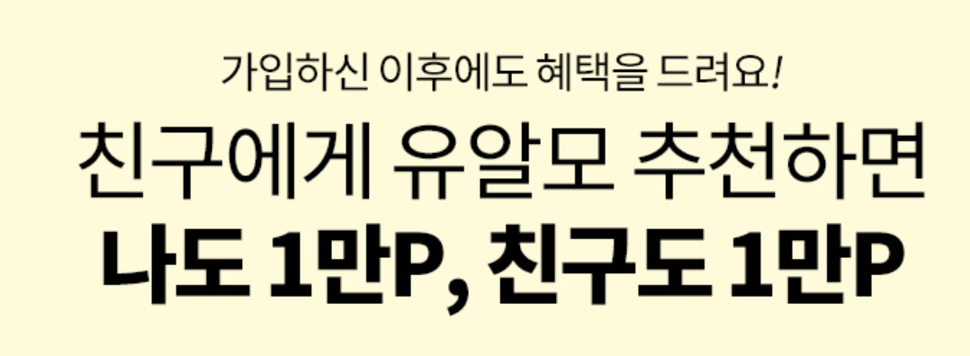 가입할 때 추천인란이 있는데 그곳에 입력을 하면 추천인과 신청인 둘 다 1만 point씩 받는다고 합니다.