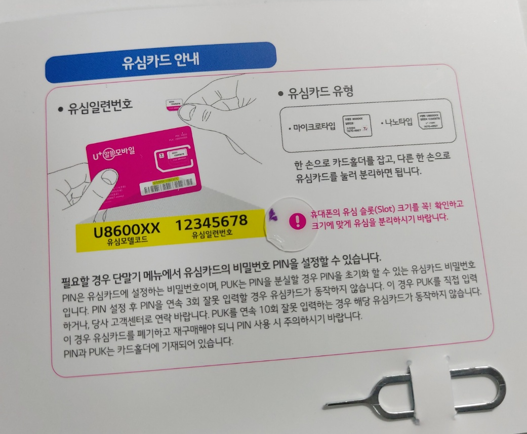 여기서 주의하실 점은 불량 유심을 제외, 유심을 개봉하시면 교환이나 환불이 불가능합니다.