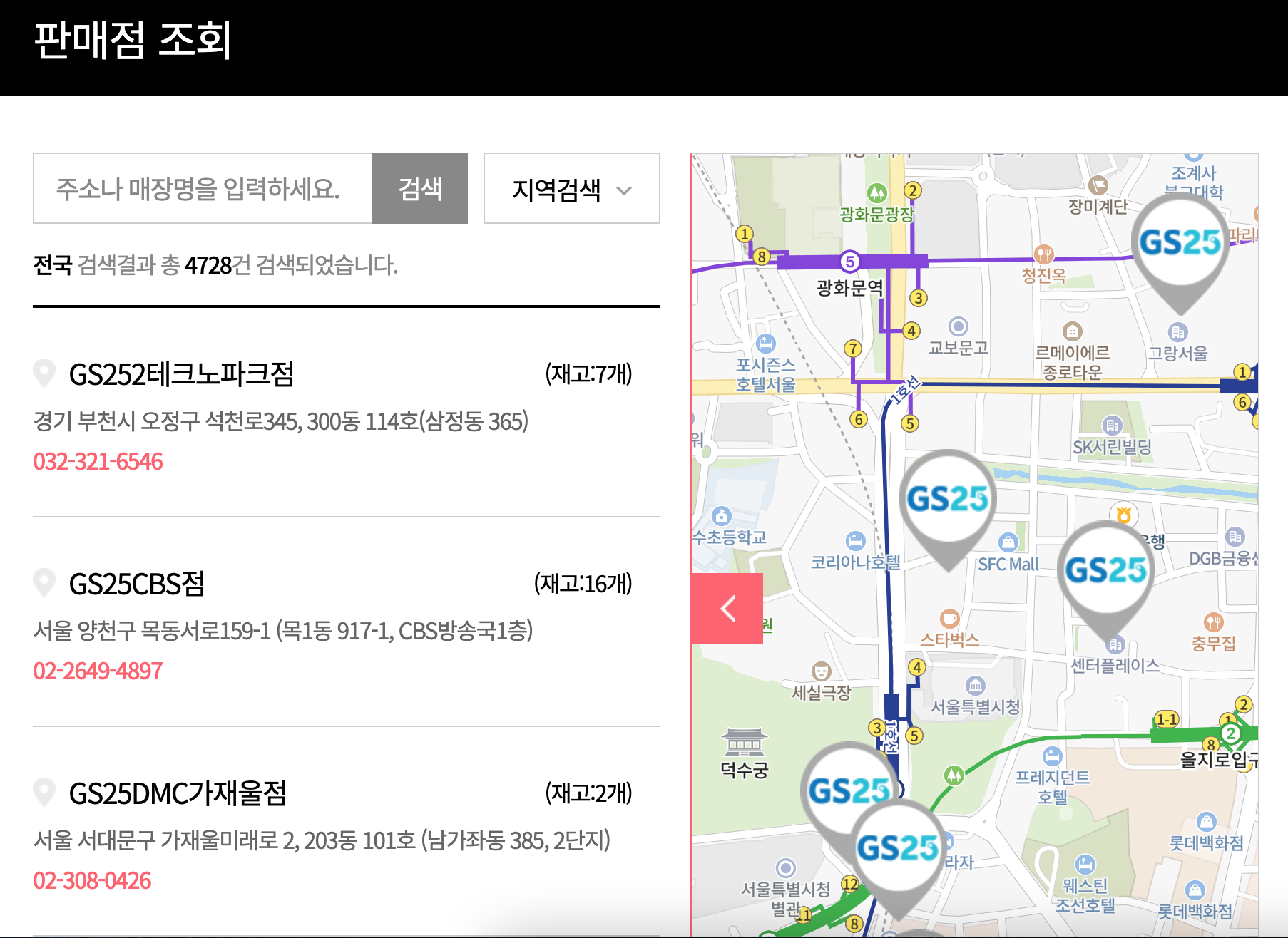 그래서 바로 GS25 편의점을 찾아갔습니다. 저는 4곳을 돌아다녀서.. 겨우 찾았습니다.😭