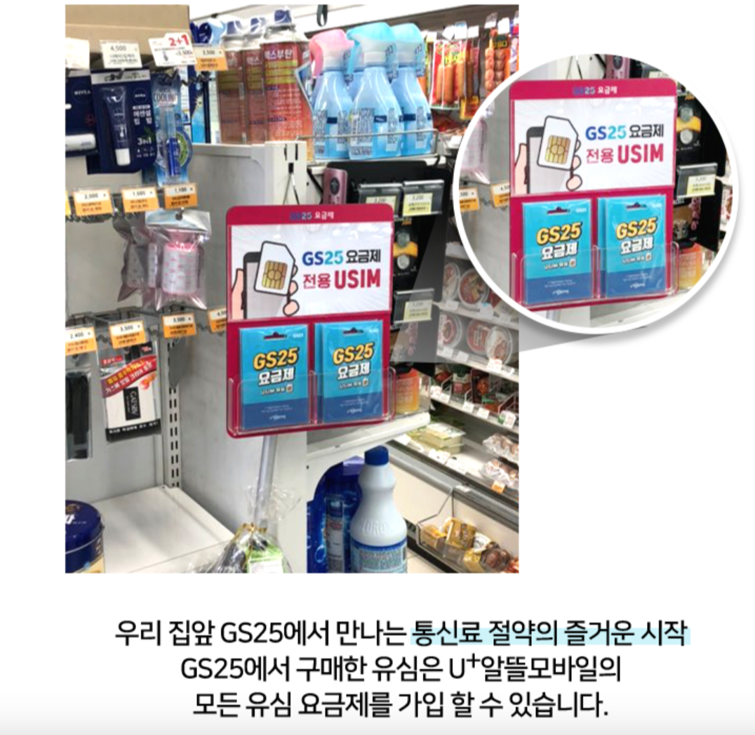 하지만 GS25 알뜰요금제는 전국에 있는 GS25 편의점에서 판매하고 있는 유심을 구매 후 바로 사용이 가능합니다.
