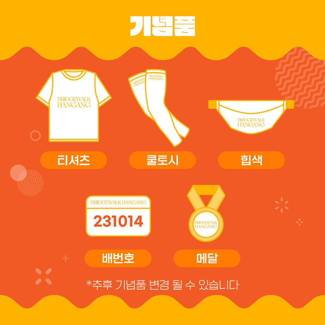 기념품은 티셔츠, 쿨토시, 힙색, 배번호, 메달까지 주네요!