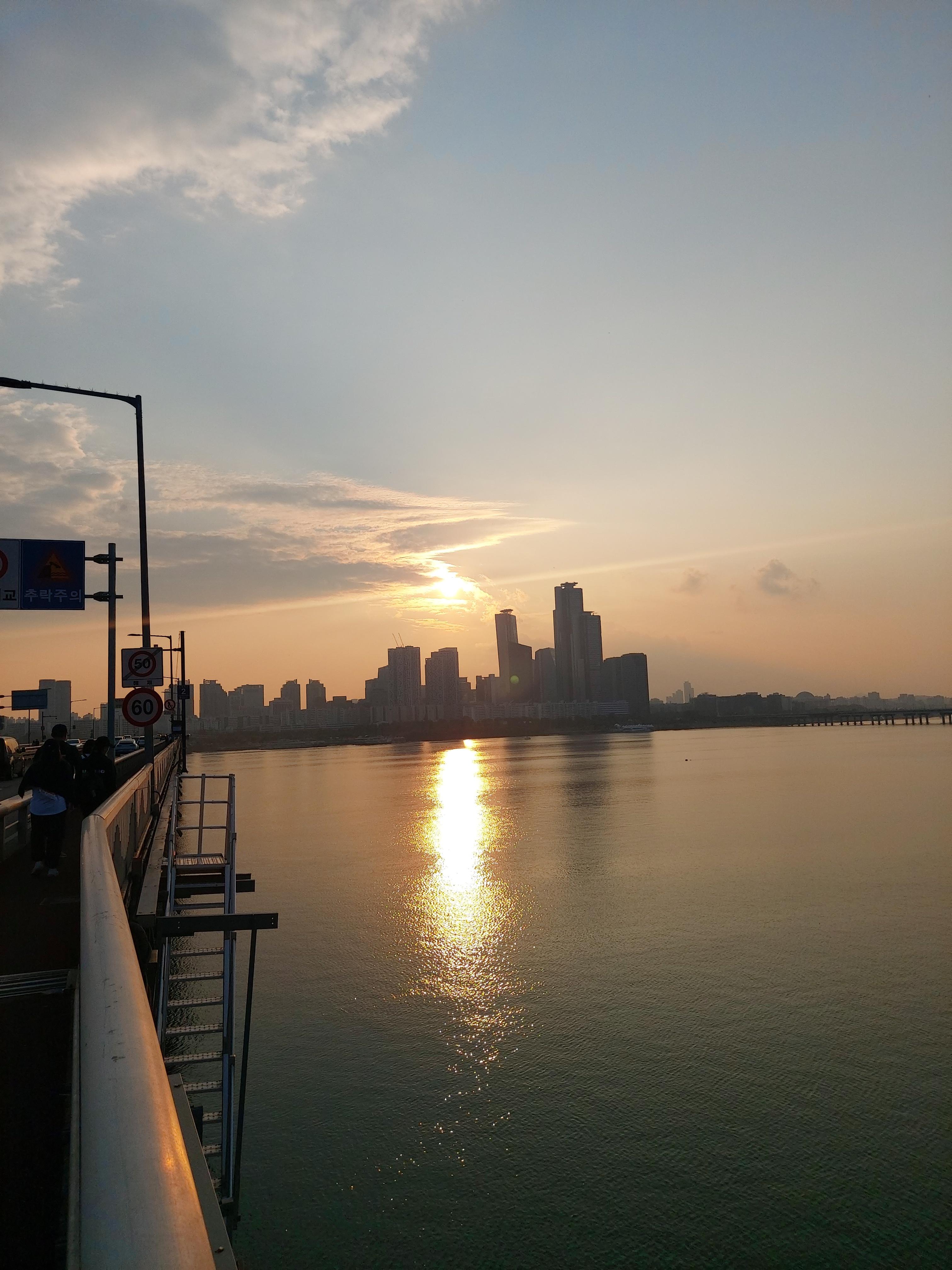한강 대교 위에서 보는 한강에 비치는 완전한 노을은 더욱이 저에게 힘을 줍니다.