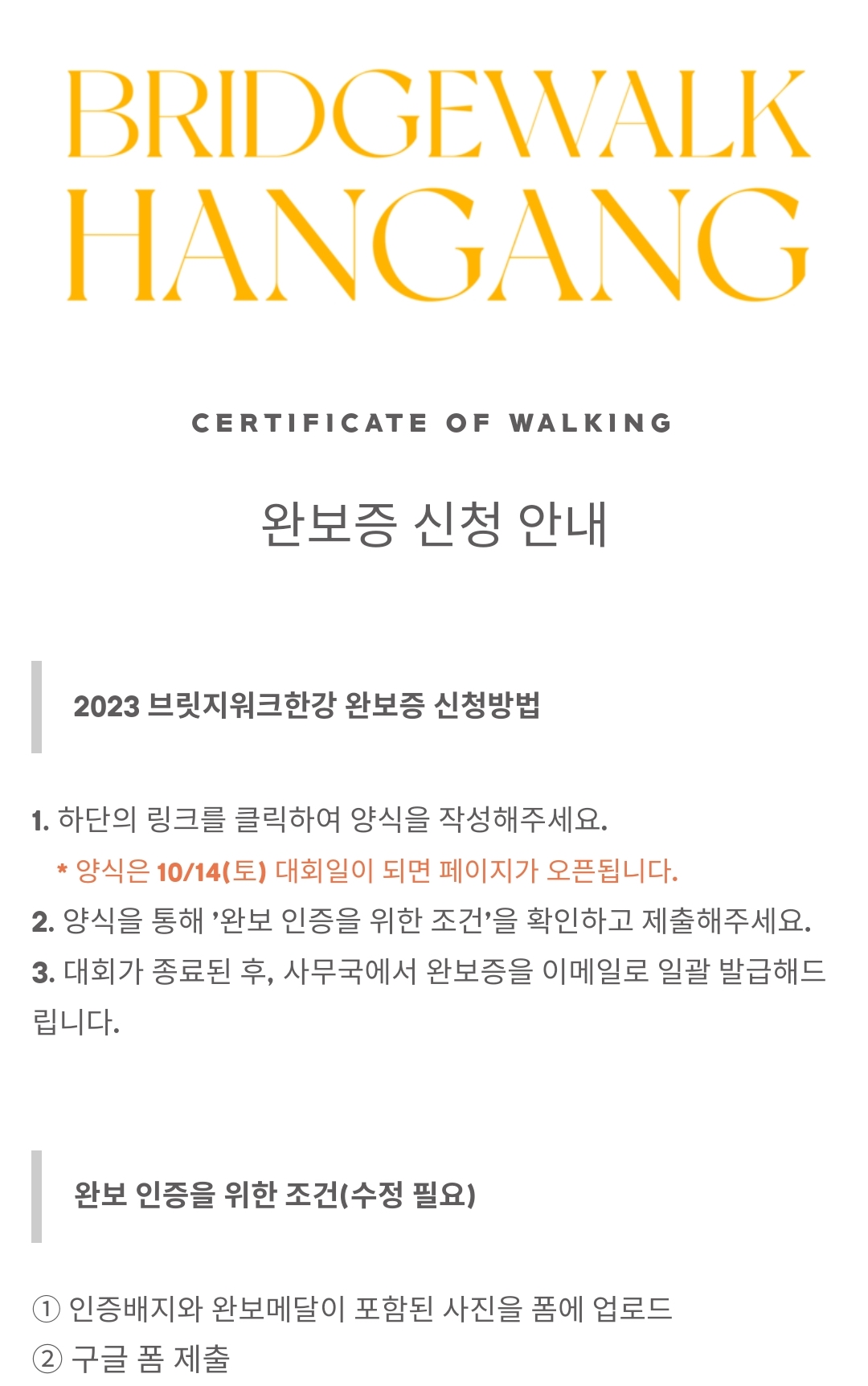 구굴폼으로 신청 가능하며, 꼭 인증배지와 완보메달이 나온 사진이 있어야 한다고 하네요.