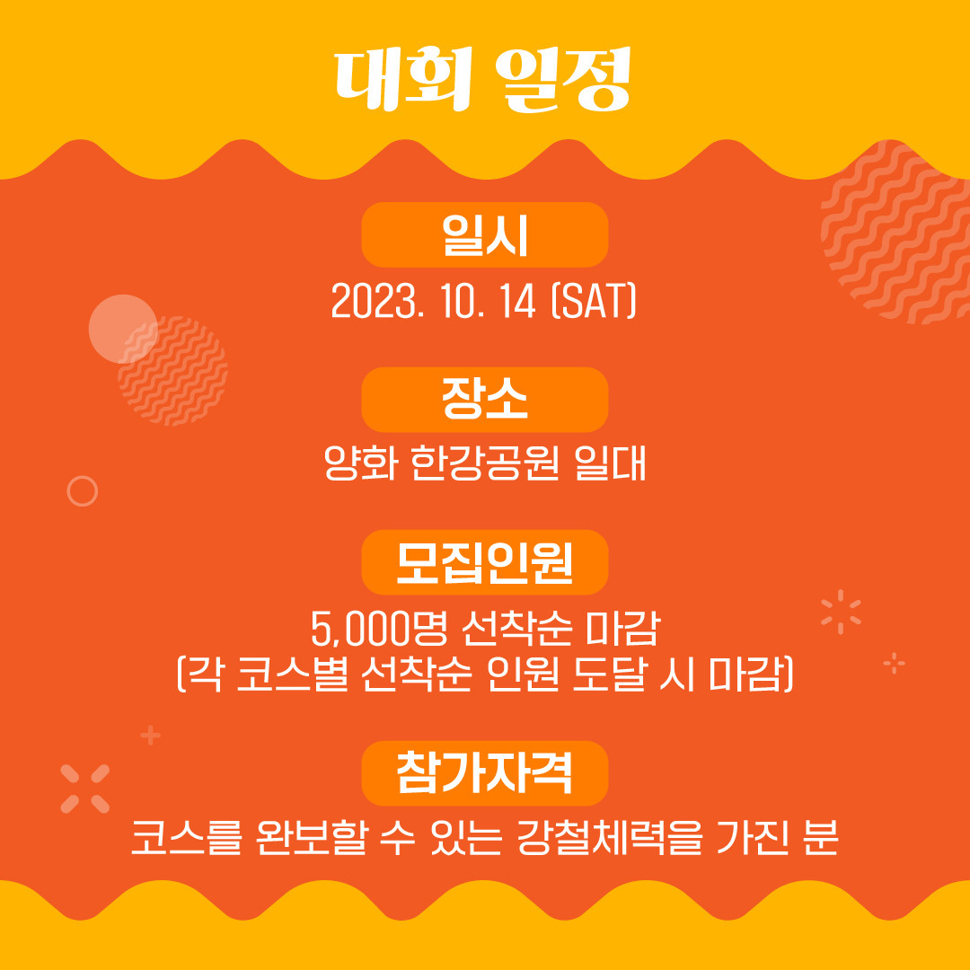 반드시 본인 출발 타임을 지켜 출발해야하며, 배번호에 출발 시간이 적혀있기 때문에 다른 시간에 출발은 안 됩니다!