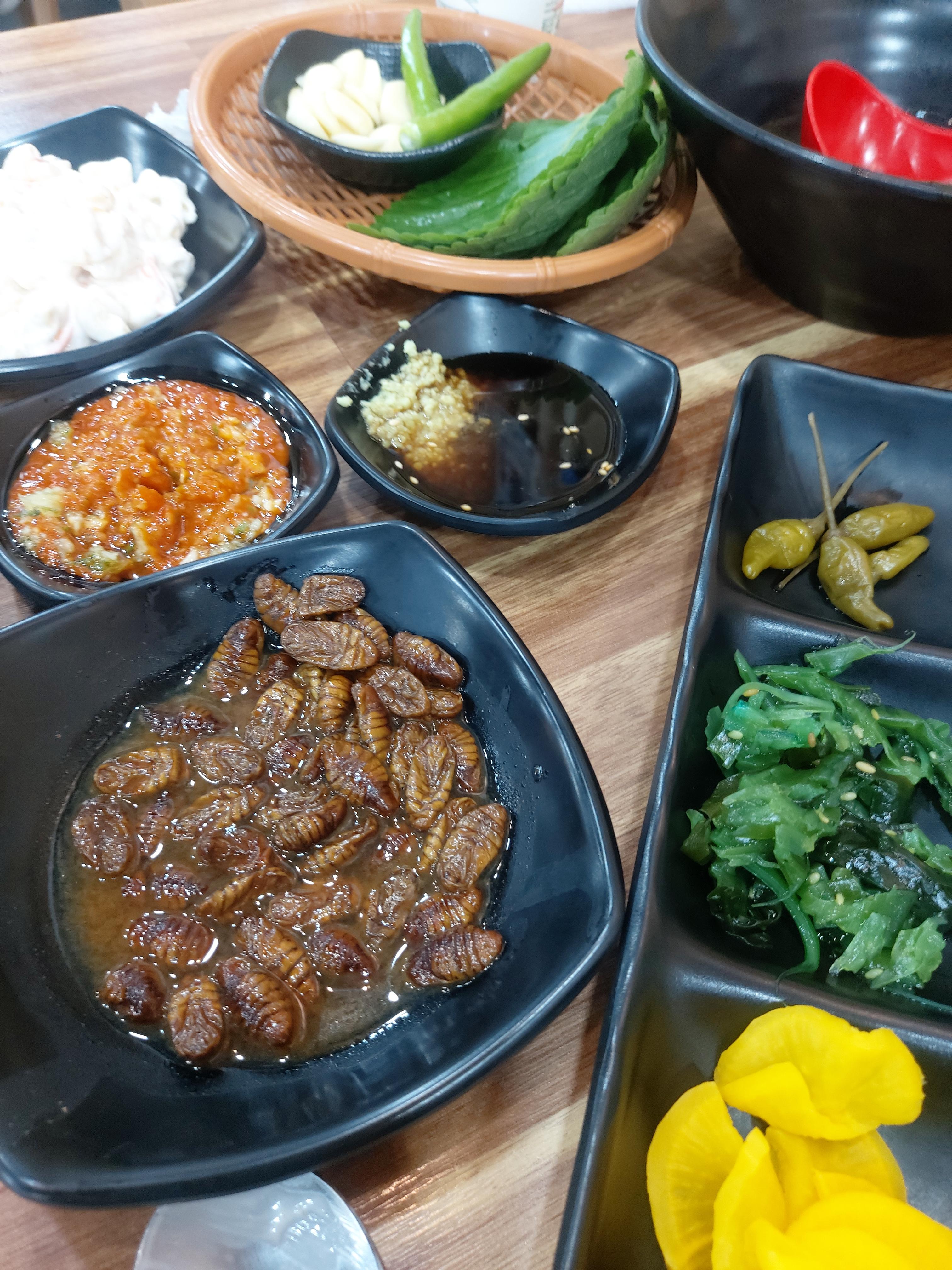 이곳에 장점은 기본 반찬으로 샐러드와 맛있는 번데기가 나온다는 것입니다.