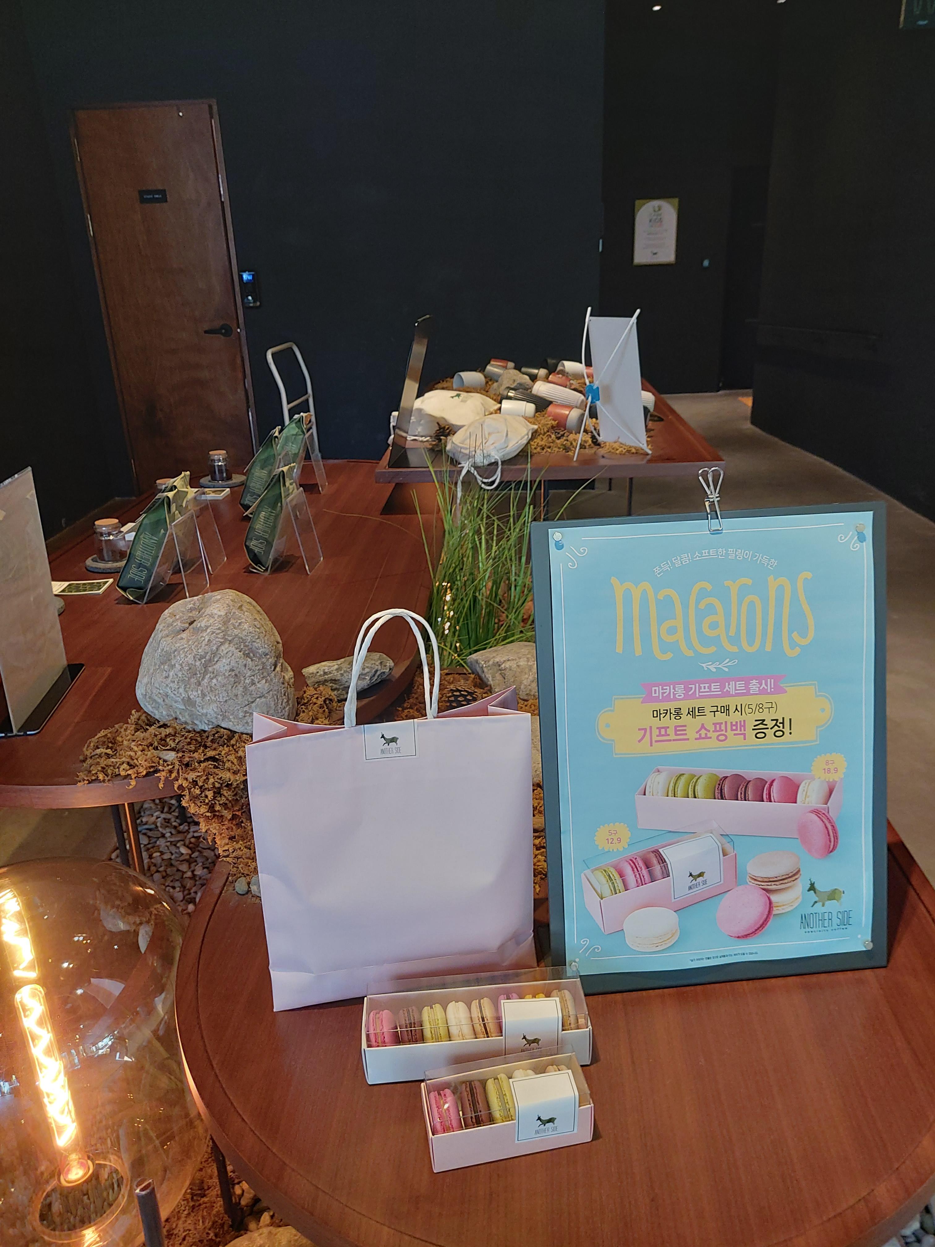 마카롱 기프트 세트와 머그컵도 판매하고 있었습니다.
