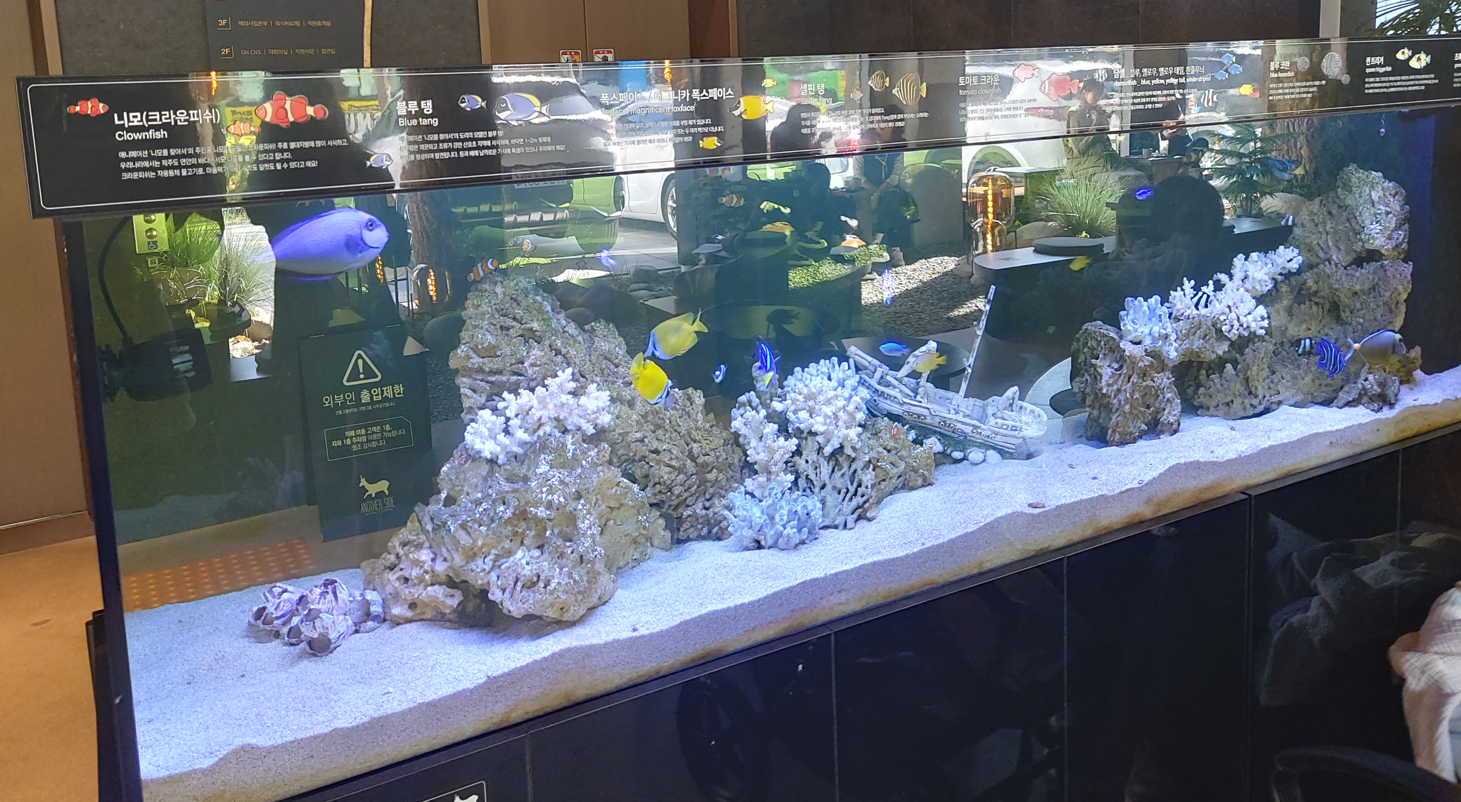 카페를 들어가면 바로 앞에 대형 수족관이 저희를 반겨줍니다.