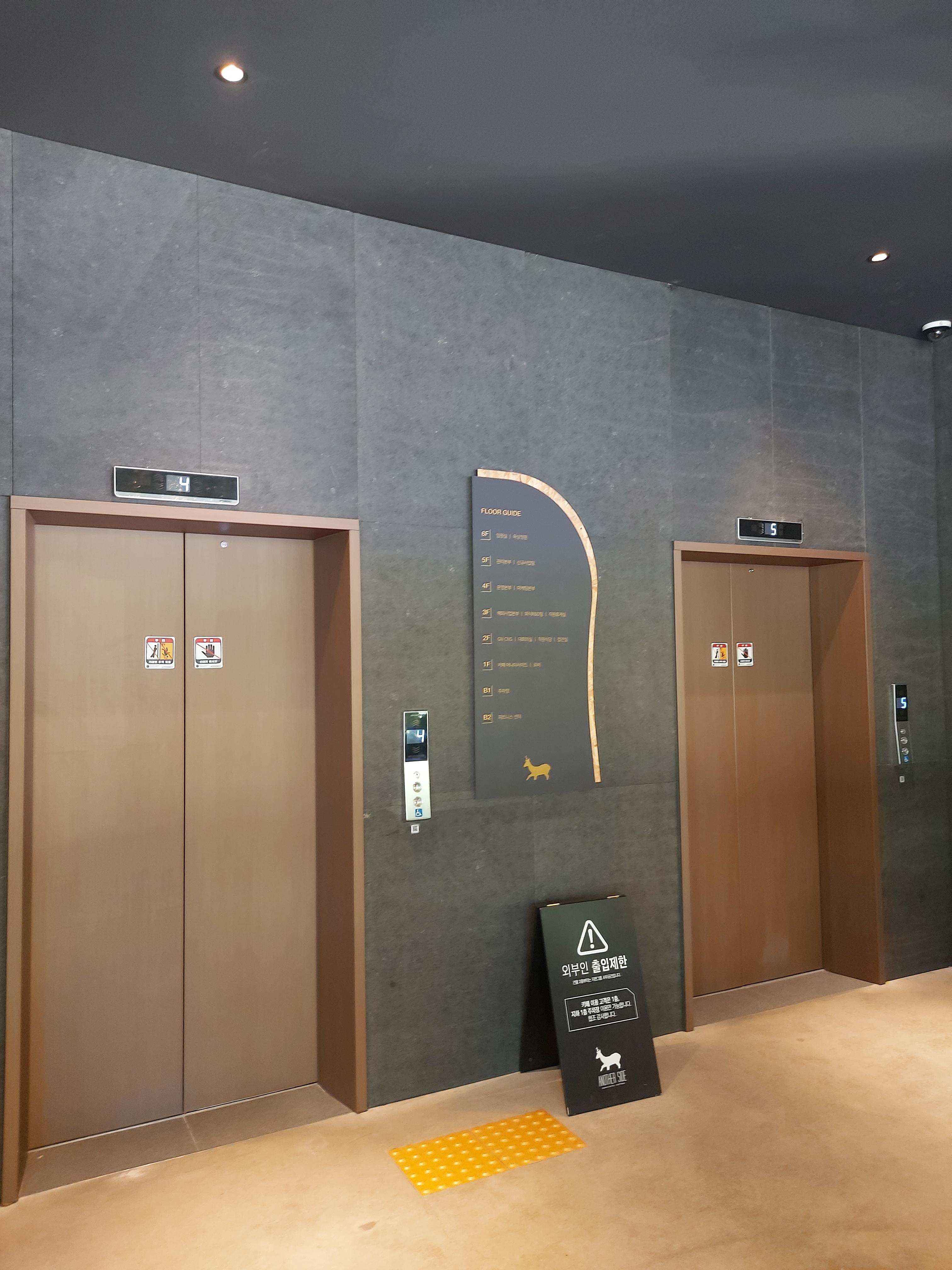 특이하게 카페 안에 건물 엘리베이터가 있는데 카페 고객은 사용을 못 합니다.