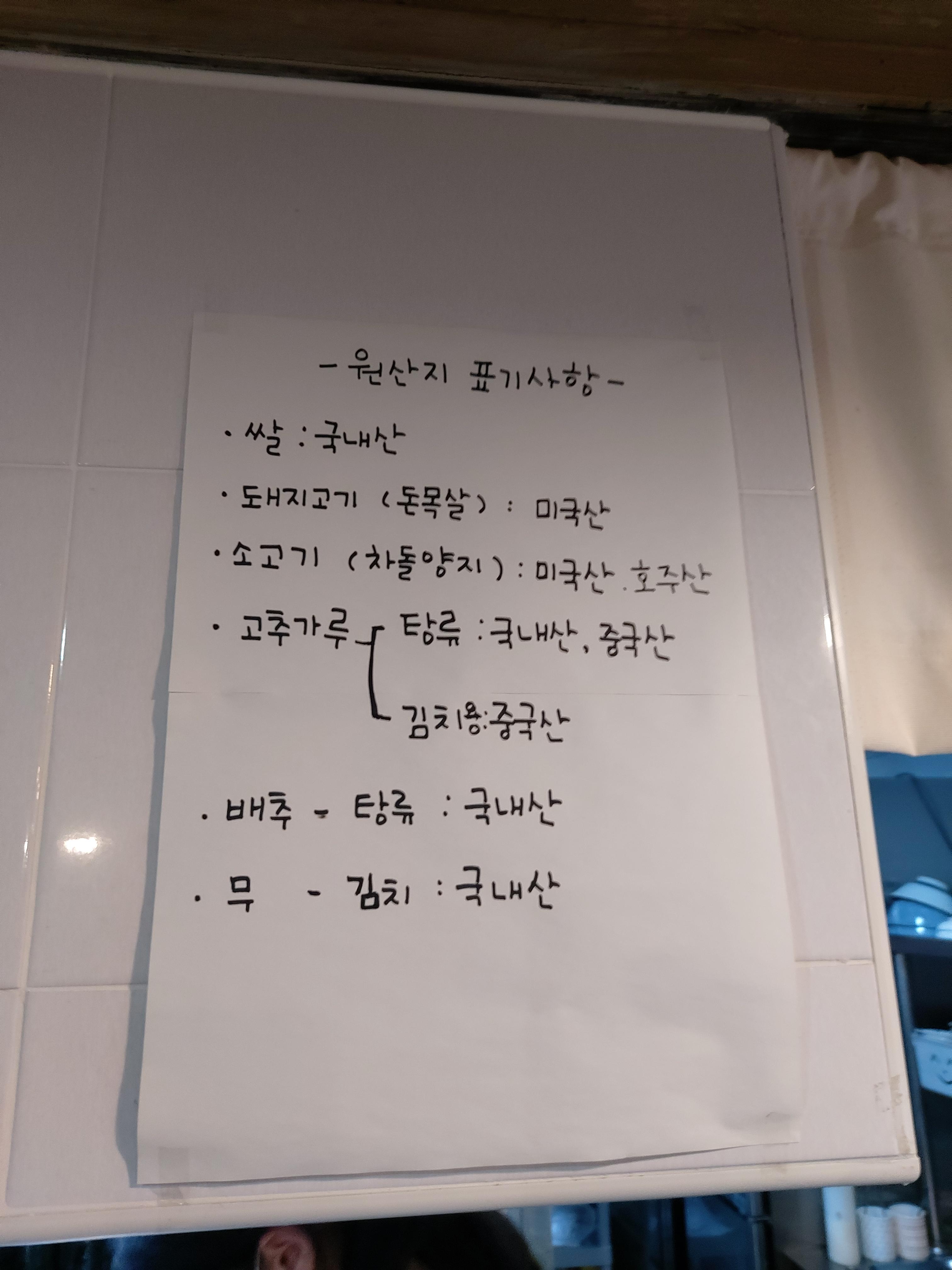 모두가 국내산이 아니어도, 원산지를 표기해 주시니 믿음이 가는 식당입니다.