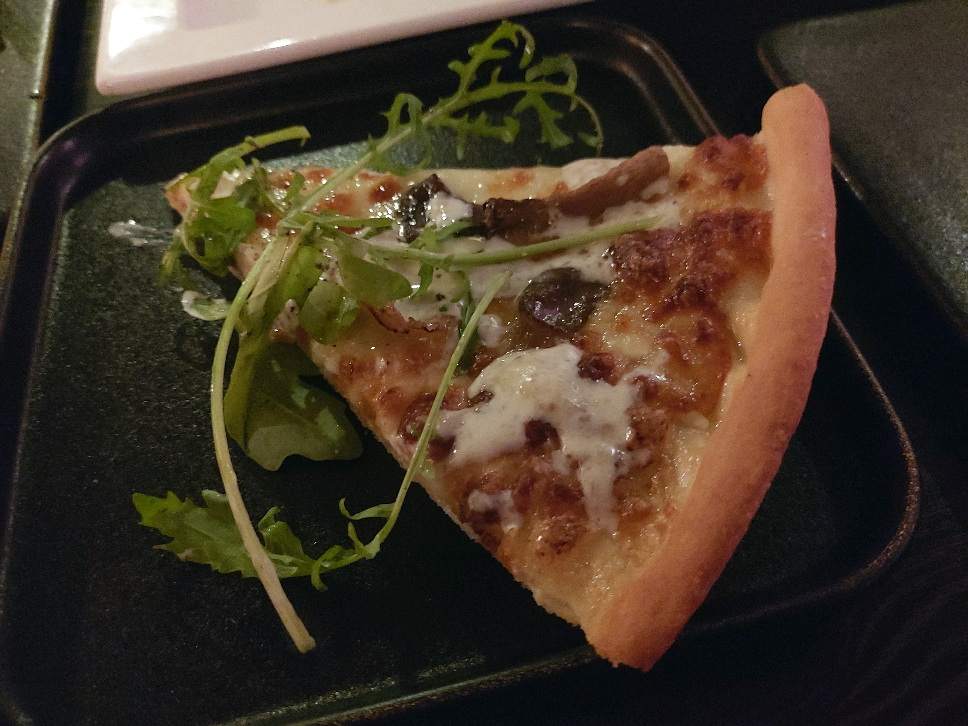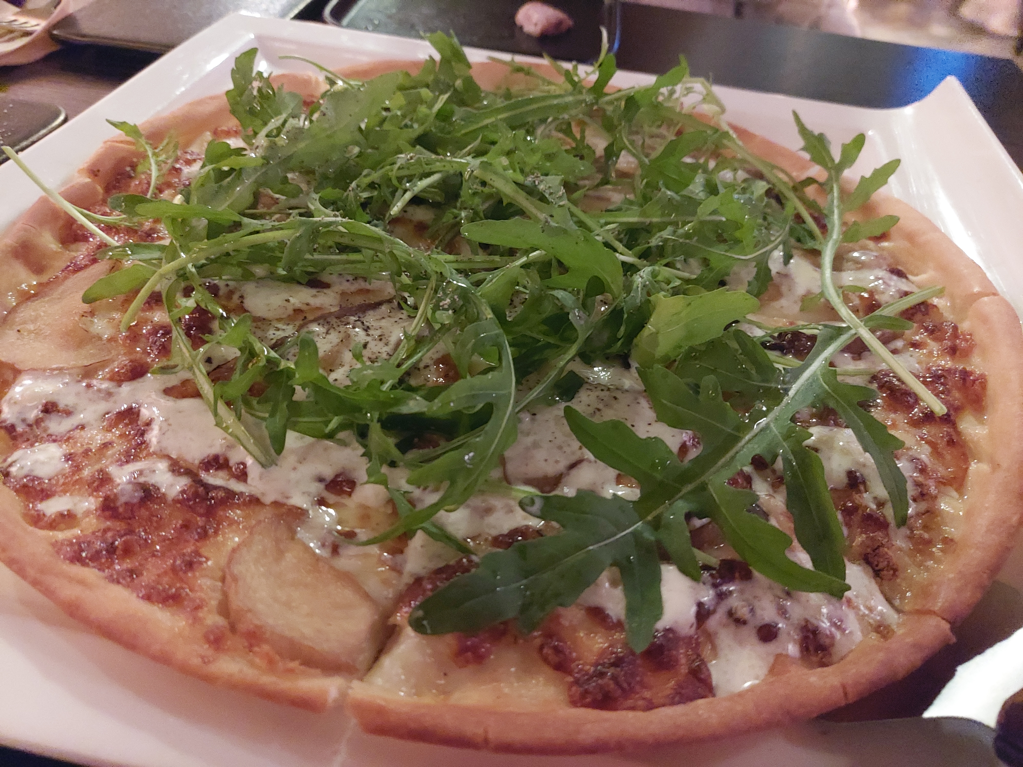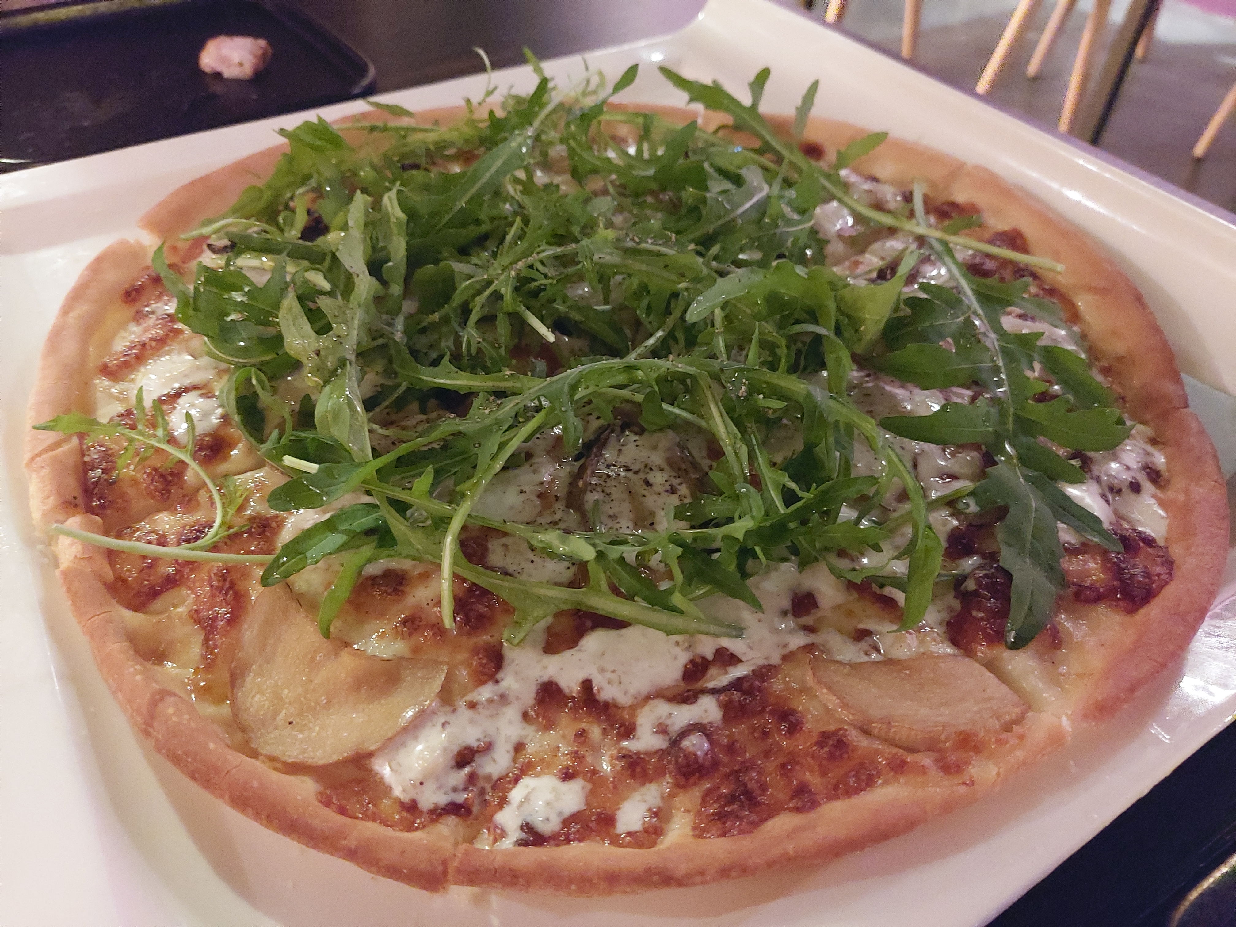 트러플 머쉬룸 크림과 루꼴라를 곁들인 풍기 피자를 시켰습니다.