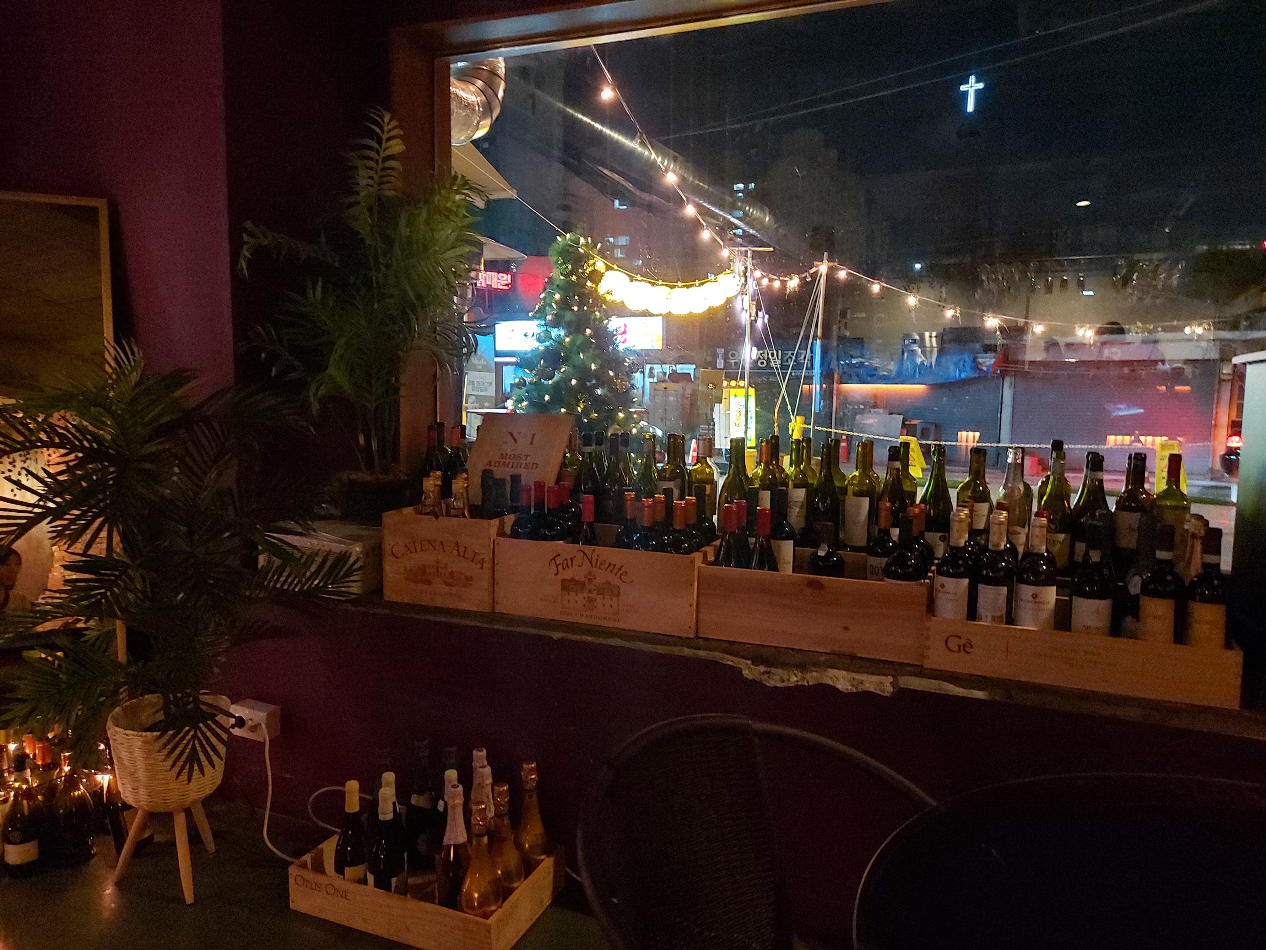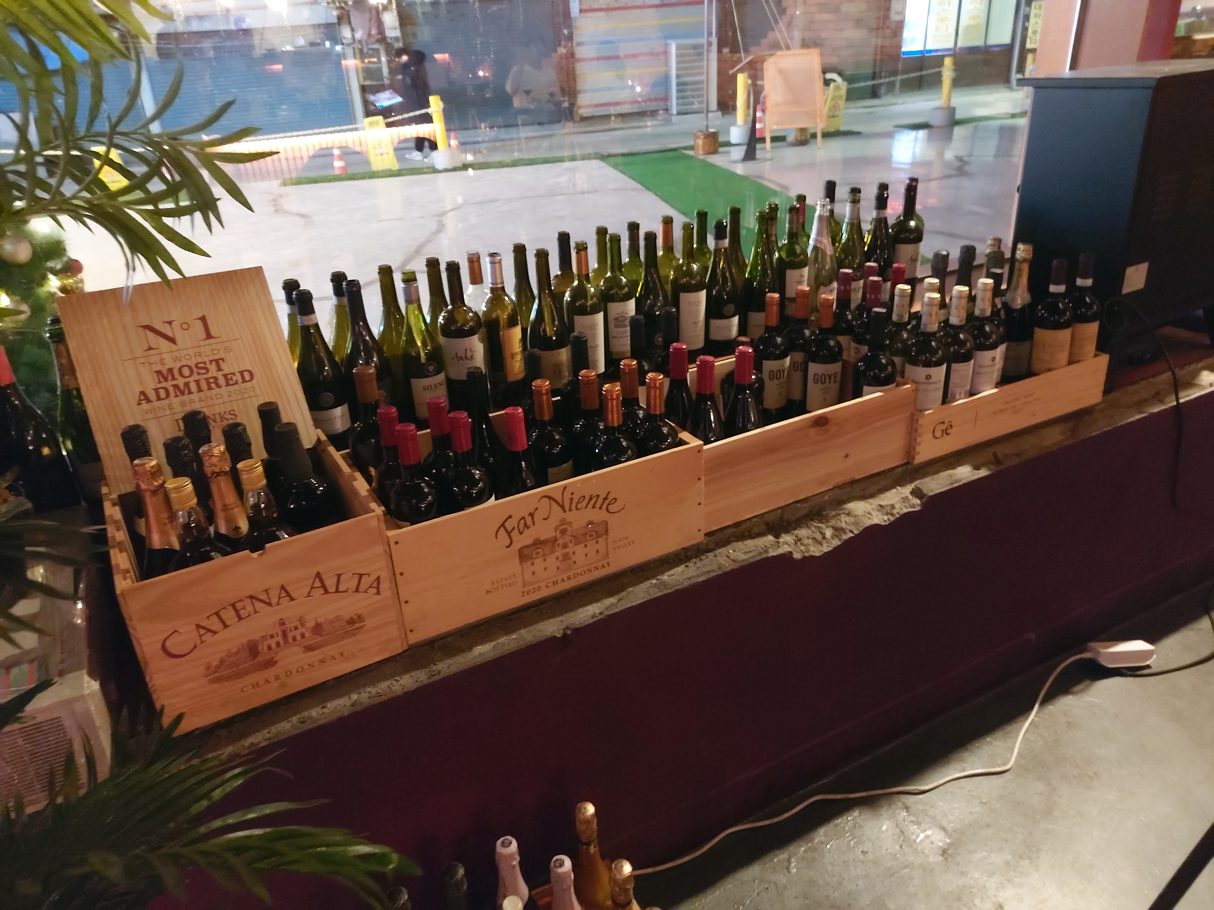 매장 입구와 그 옆에 있는 수많은 와인들입니다.